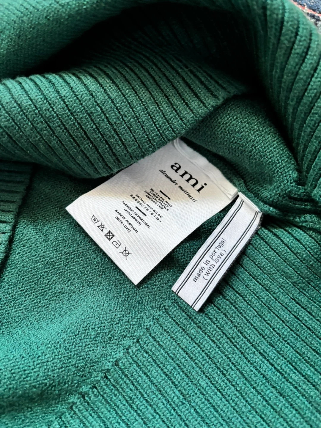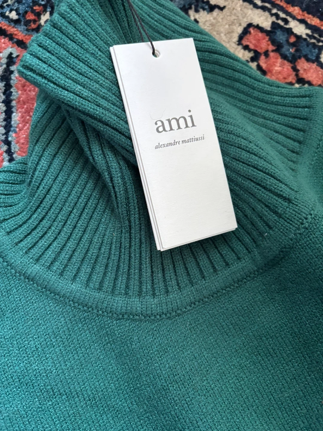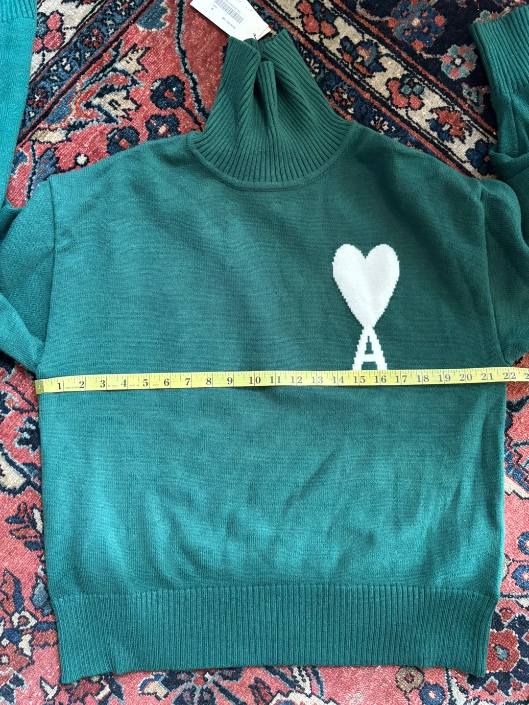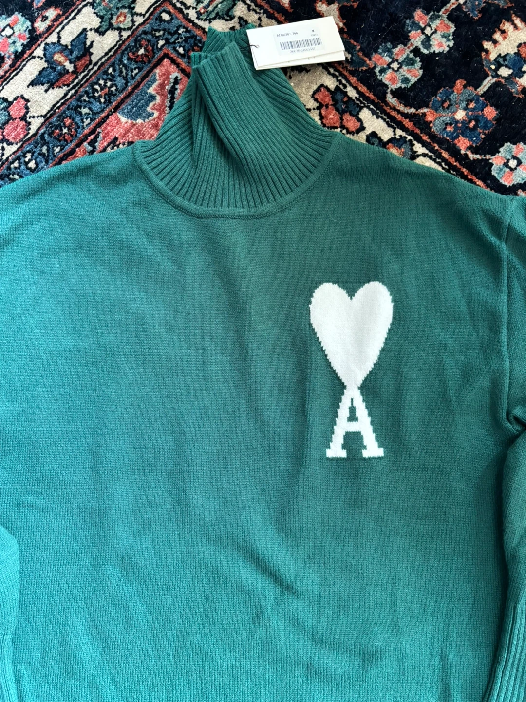 Selling a cozy AMI Alexandre Mattiussi turtleneck sweater! It's a beautiful green color and features the signature AMI heart logo. Made in Portugal with love!