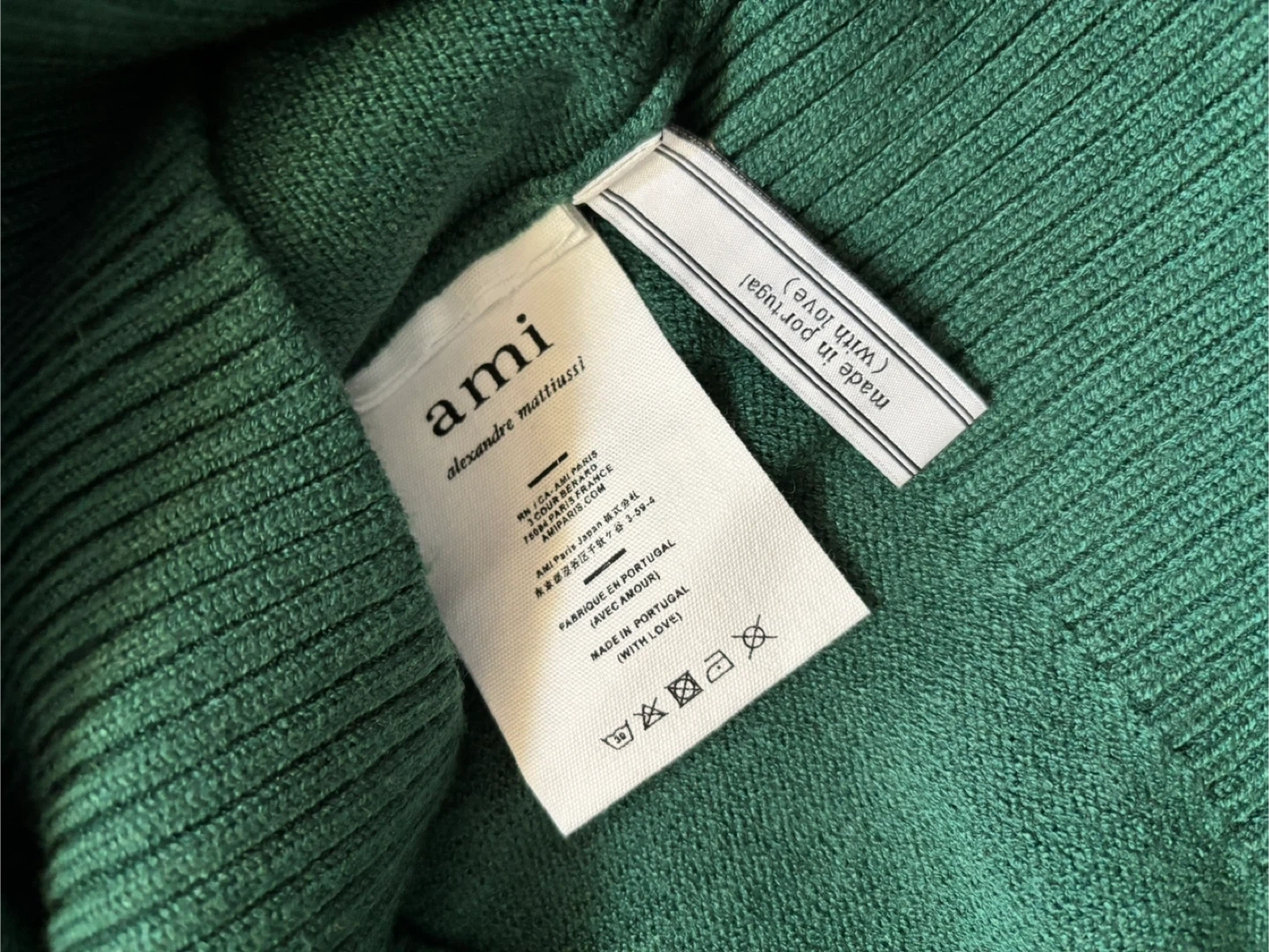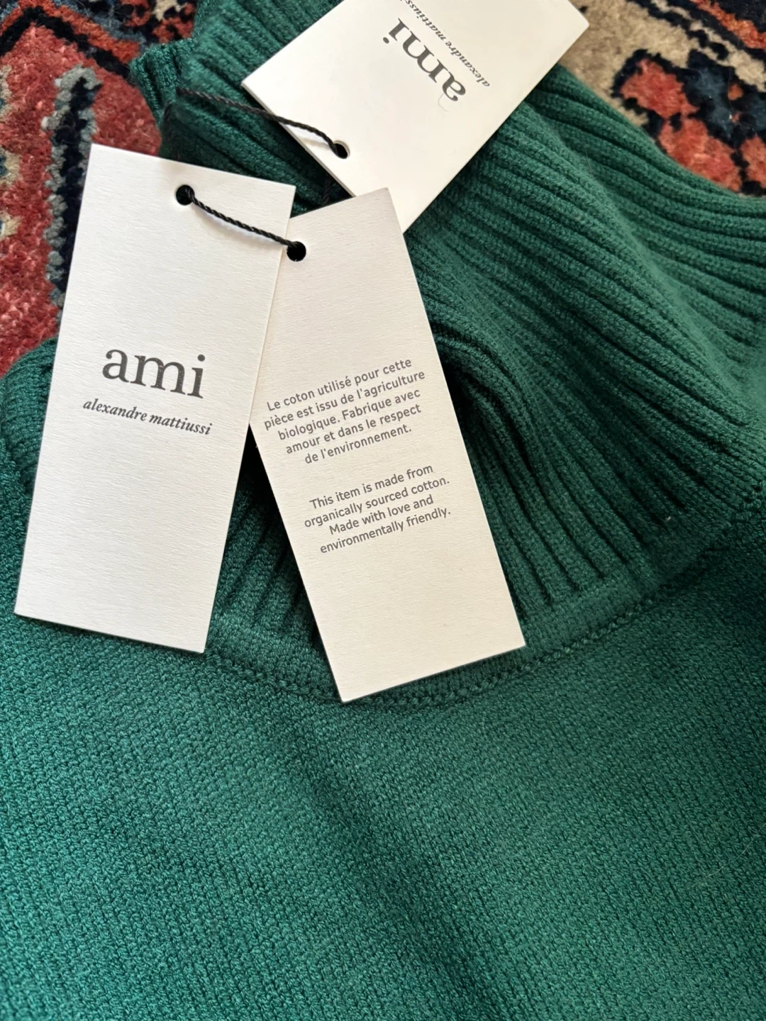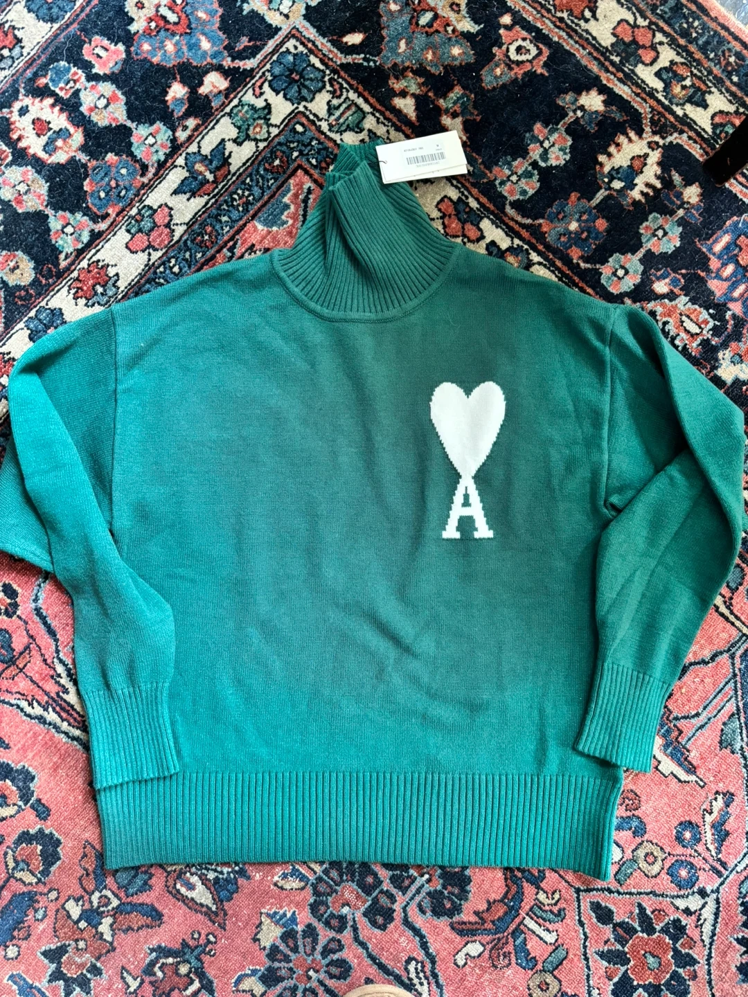 Selling a cozy AMI Alexandre Mattiussi turtleneck sweater! It's a beautiful green color and features the signature AMI heart logo. Made in Portugal with love!