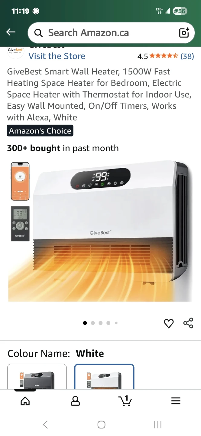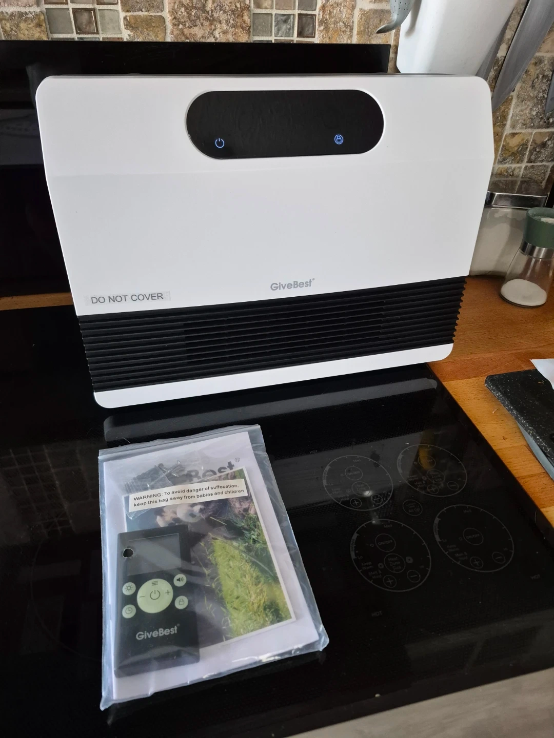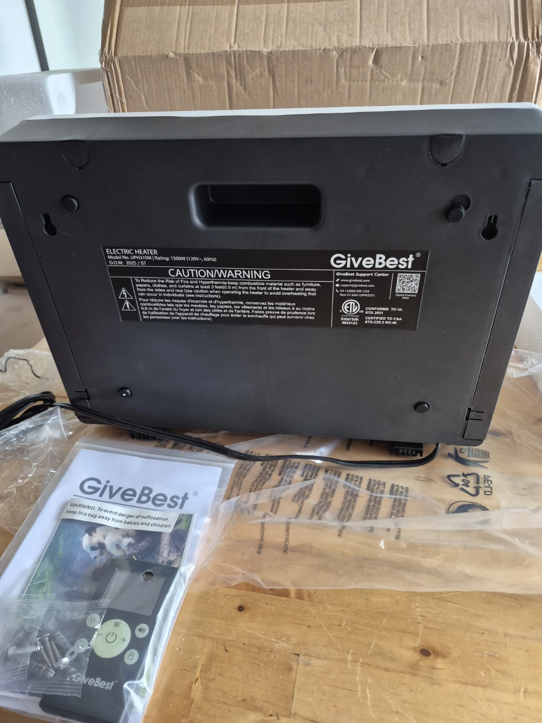 Selling a GiveBest Smart Wall Heater in white. It's a 1500W fast heating space heater with a thermostat, perfect for indoor use. It can be easily wall mounted and has on/off timers. It also works with Alexa. The original price was $149.99 and with Remote