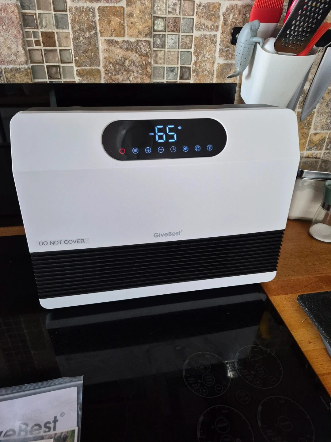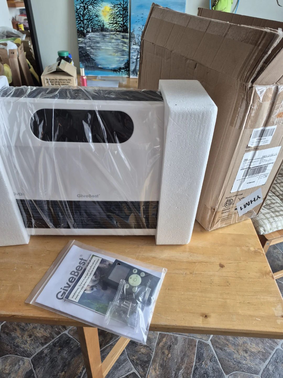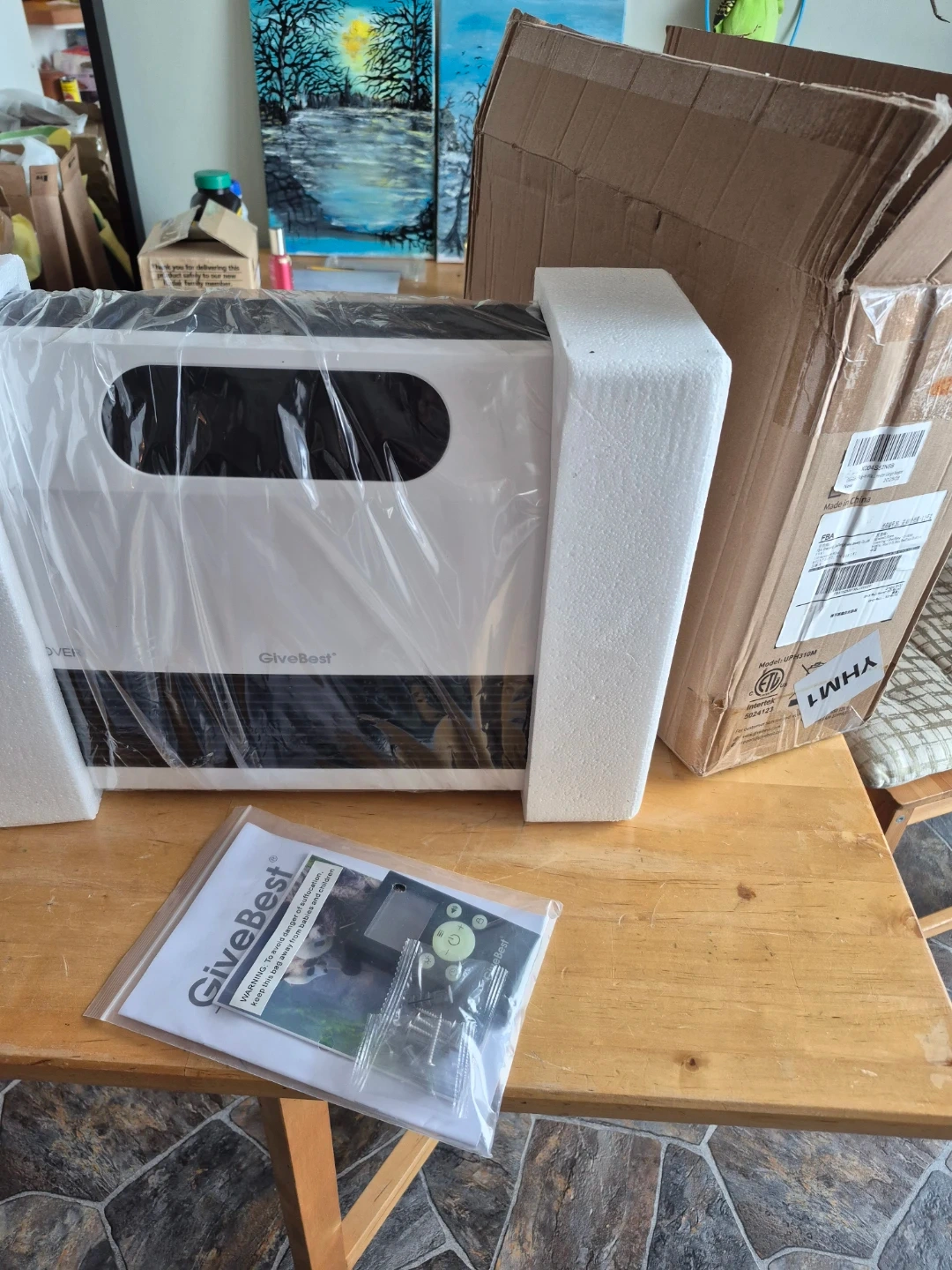 Selling a GiveBest Smart Wall Heater in white. It's a 1500W fast heating space heater with a thermostat, perfect for indoor use. It can be easily wall mounted and has on/off timers. It also works with Alexa. The original price was $149.99 and with Remote