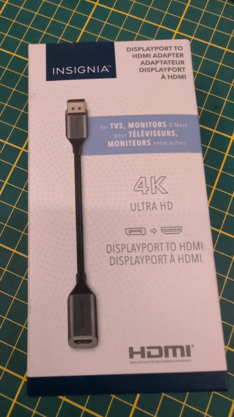 I'm selling a new Insignia DisplayPort to HDMI adapter. It's still in its original packaging and ready to connect your devices to TVs, monitors, and more! It supports 4K Ultra HD.