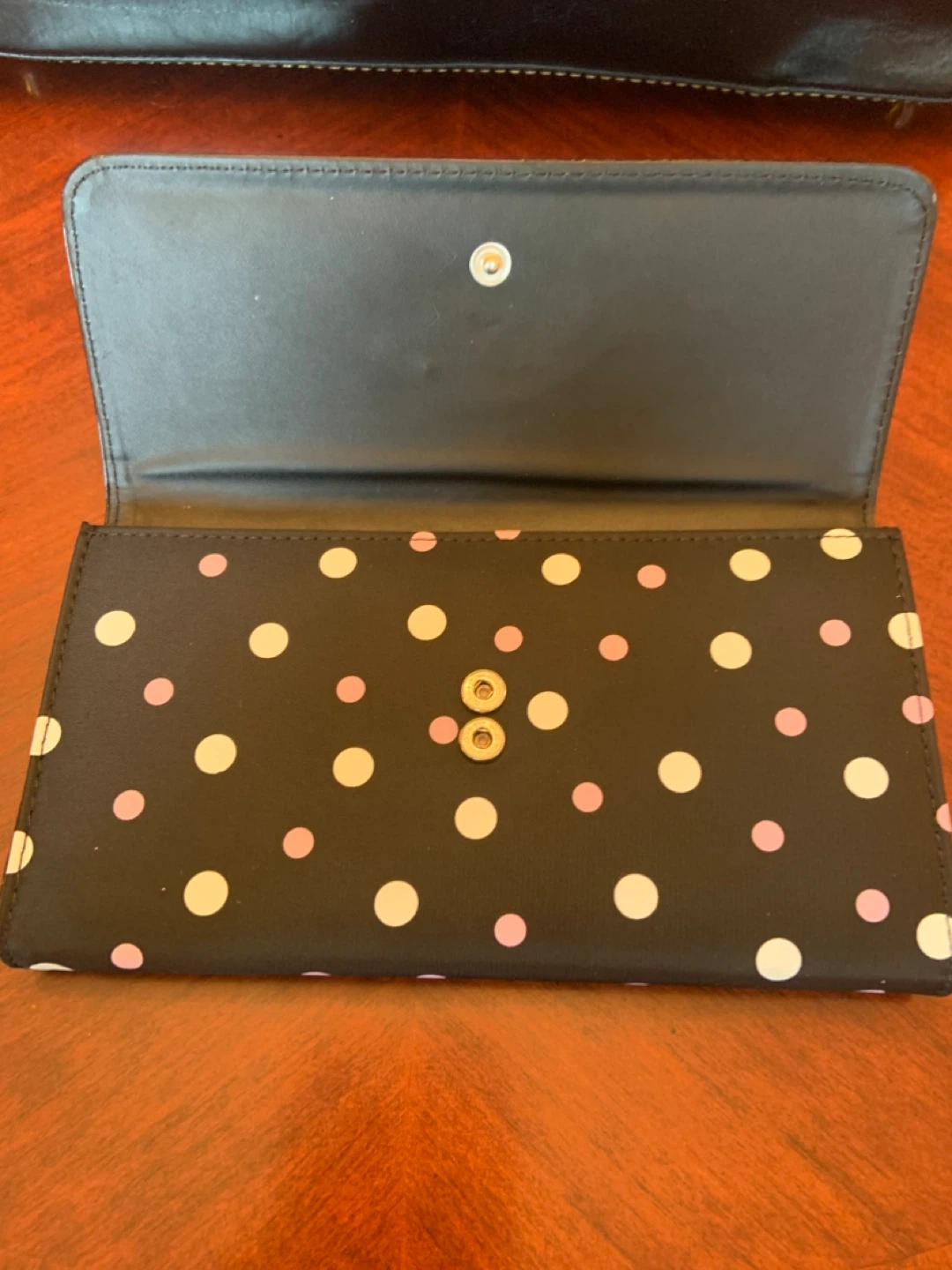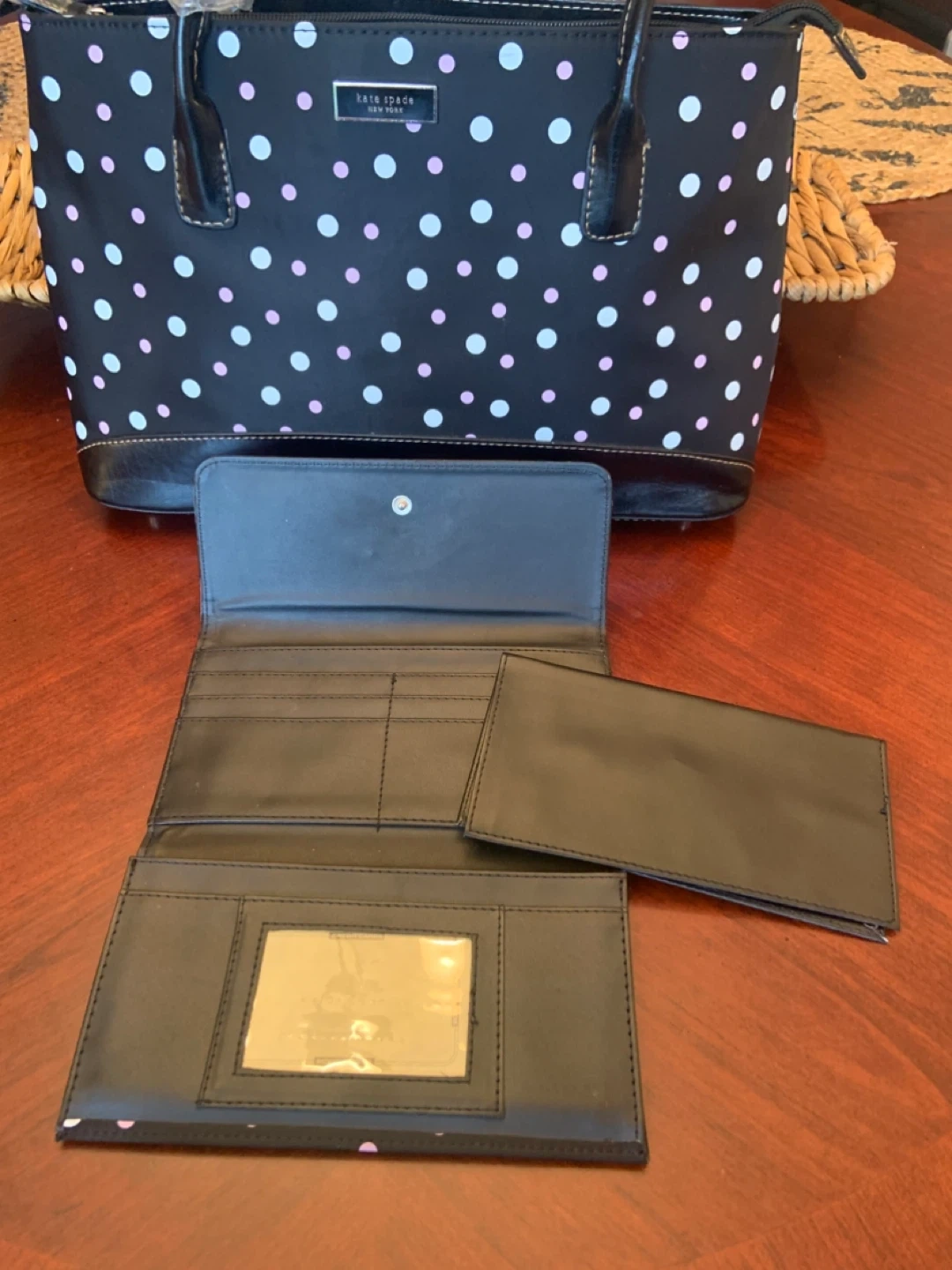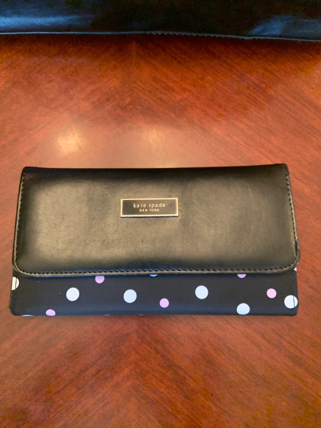 • Selling a Kate Spade wallet in a cute black polka dot pattern! It's in great condition and ready for a new owner. Perfect for keeping your cards and cash organized.