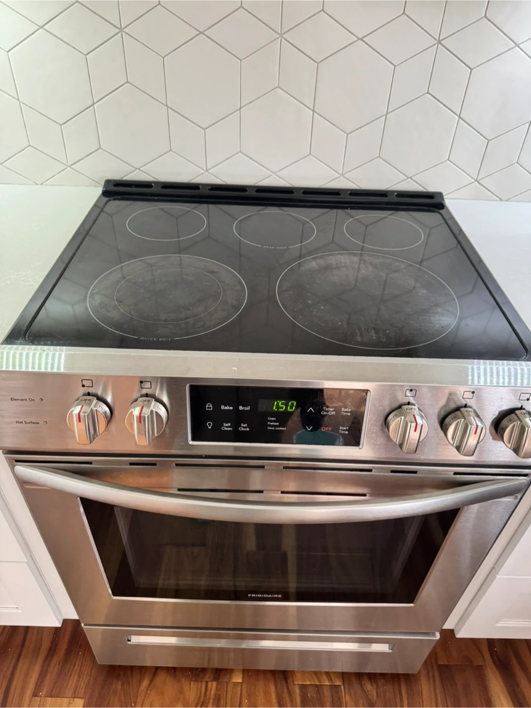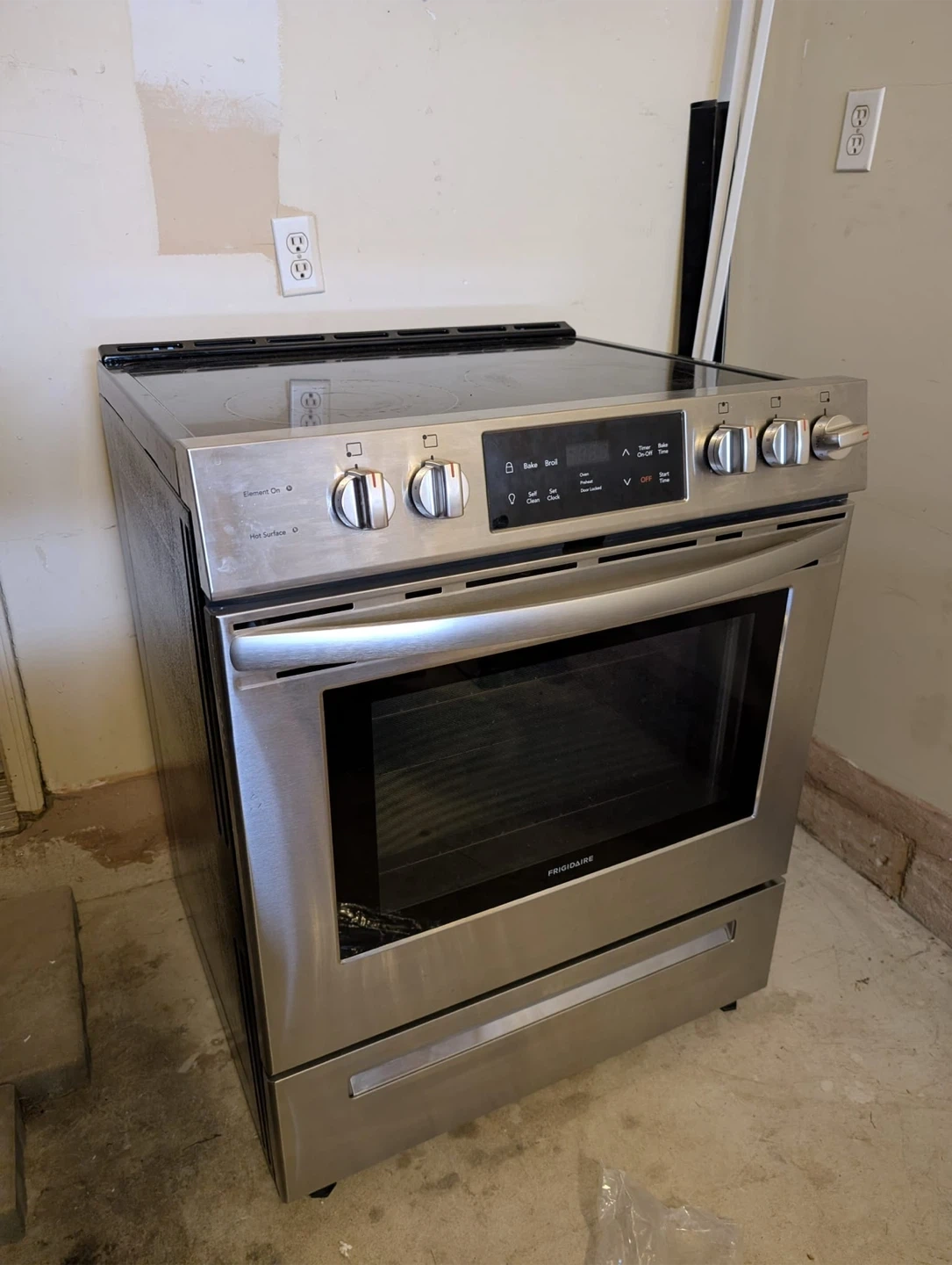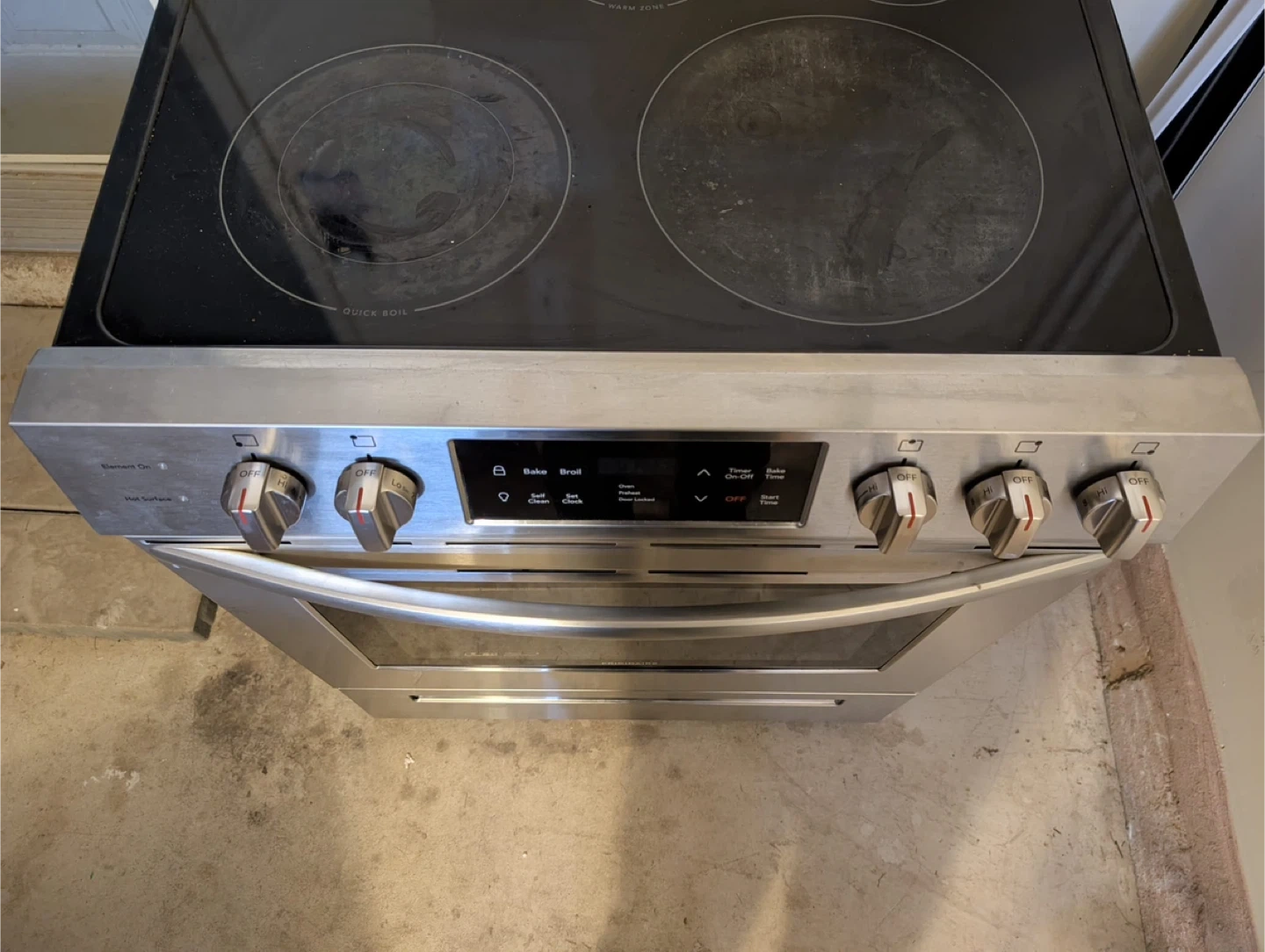Stainless steel Frigidaire cooking range in a perfect working condition. We are selling it as we upgraded to a gas range. The cooking range manual and everything is intact. It is from a smoke free pet free home.