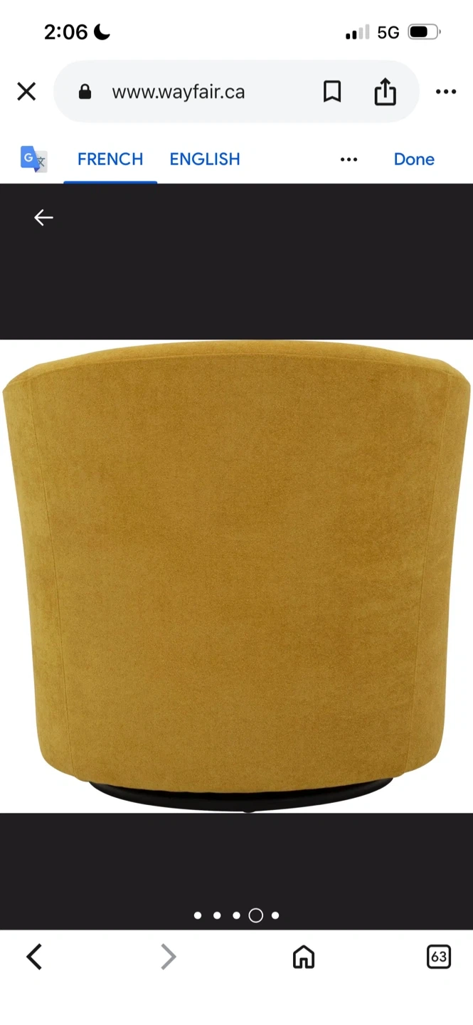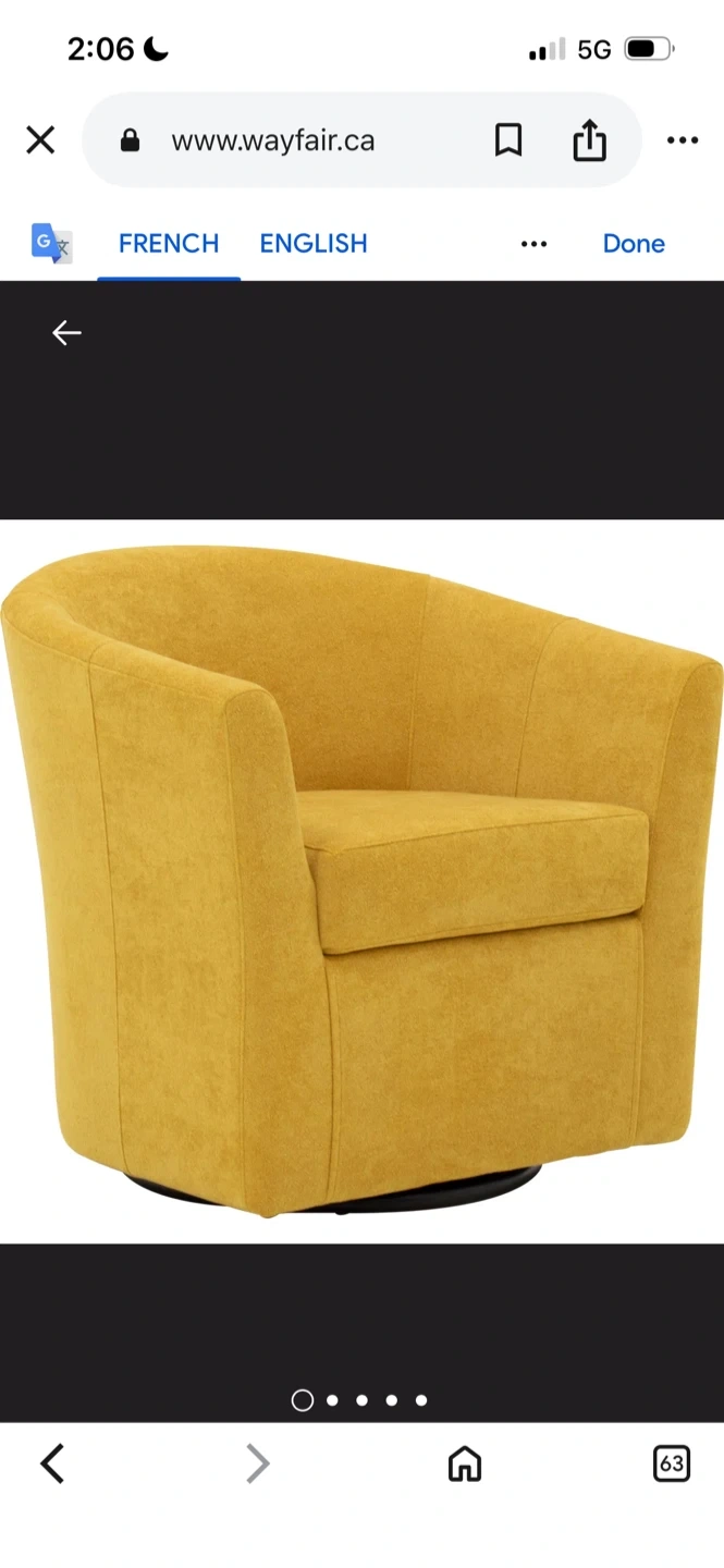 I'm selling a comfortable yellow swivel barrel accent chair! It would be a great addition to any living space. The chair features a swivel base for easy movement and is in great condition. The dimensions are approximately 30 inches in height, 27 inches in width, and 30.5 inches in depth