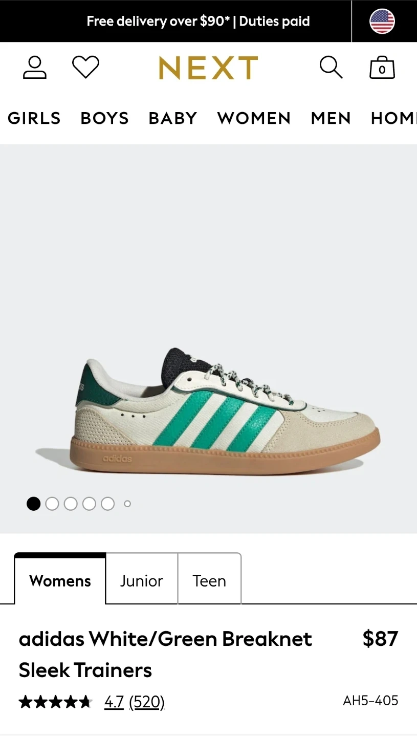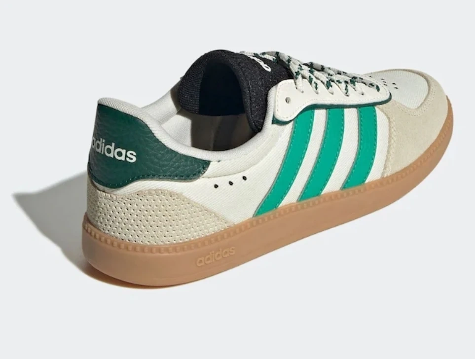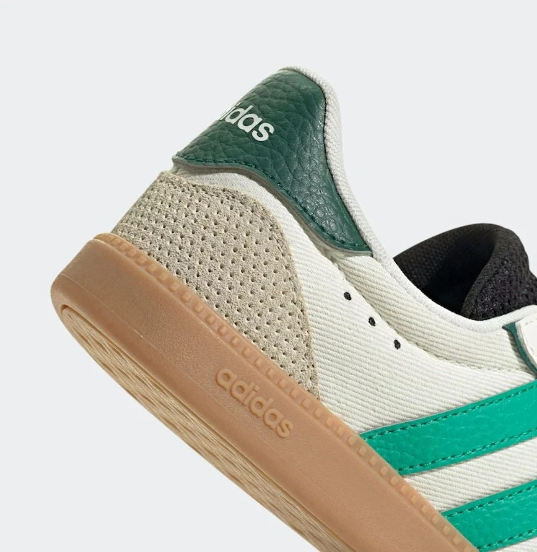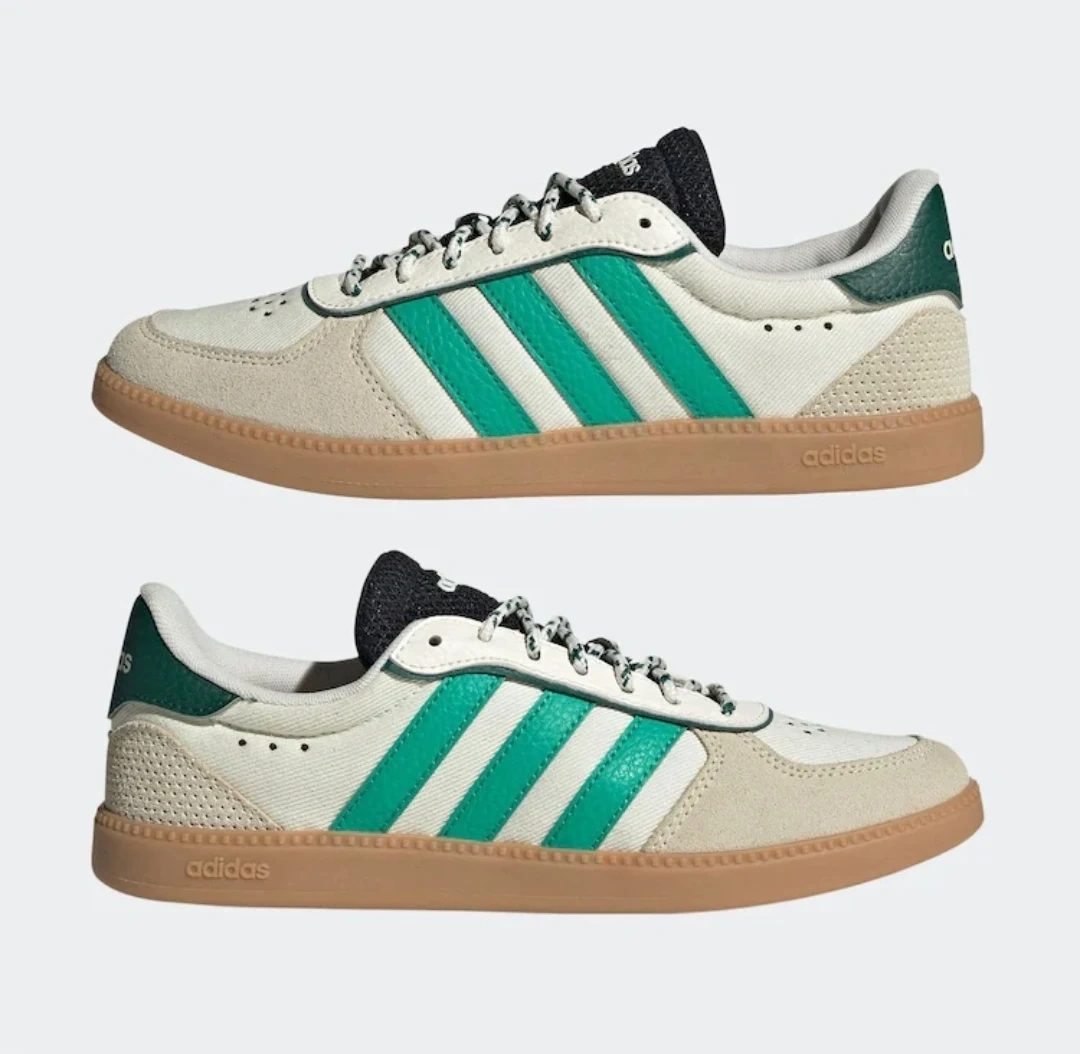 Selling new pairs of Women's Adidas Breaknet sneakers featuring a cream, white, and green colour.