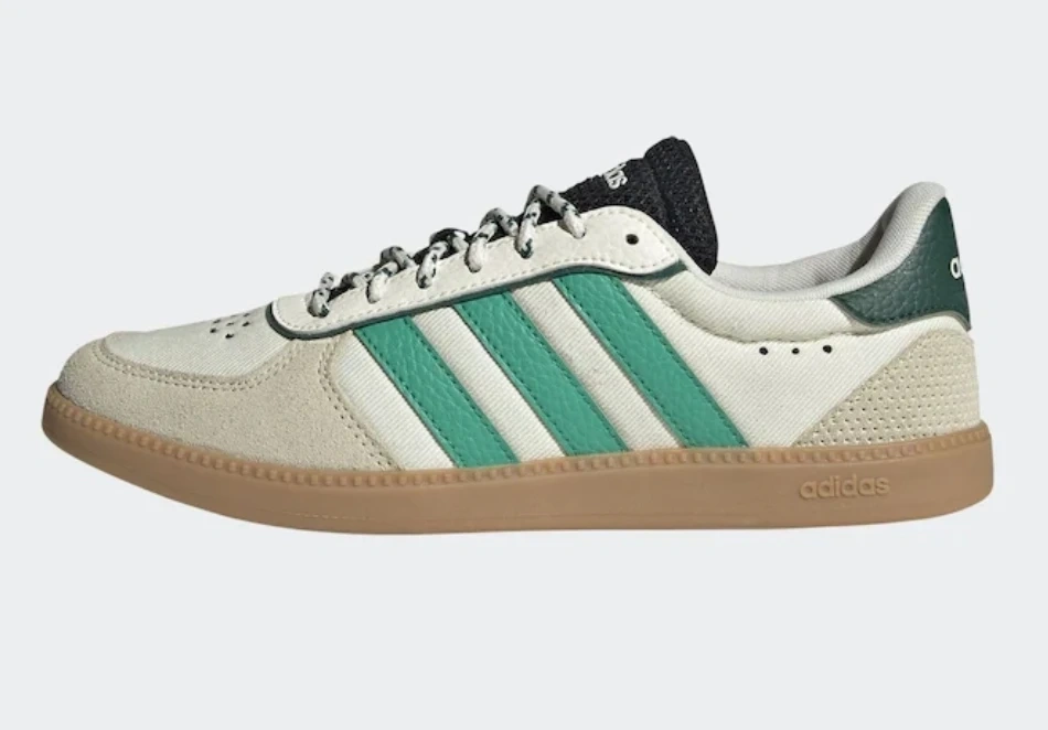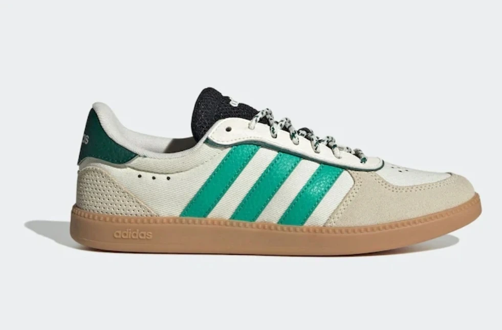 Selling new pairs of Women's Adidas Breaknet sneakers featuring a cream, white, and green colour.