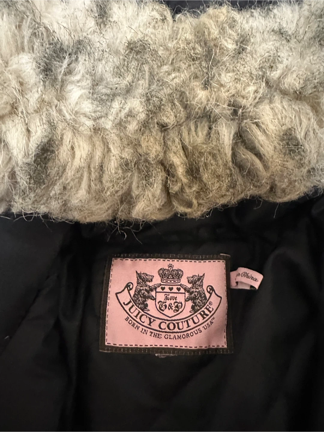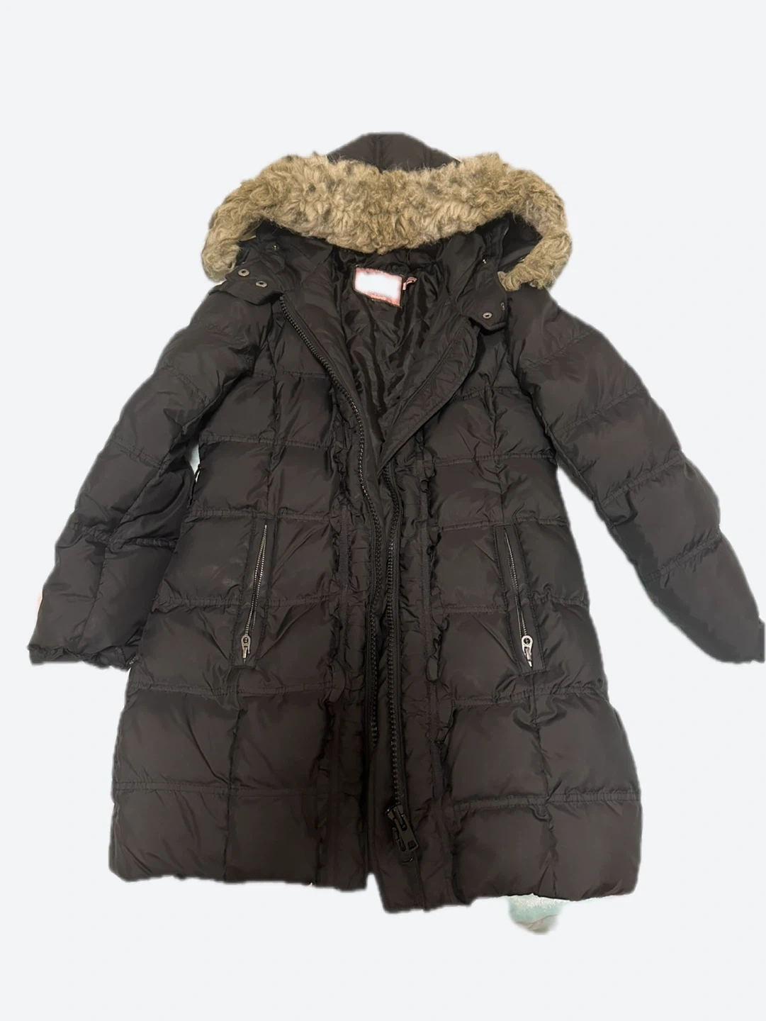 Selling a Juicy Couture puffer coat in black. It features a faux fur hood and is in good condition. Perfect for staying warm during the colder months!