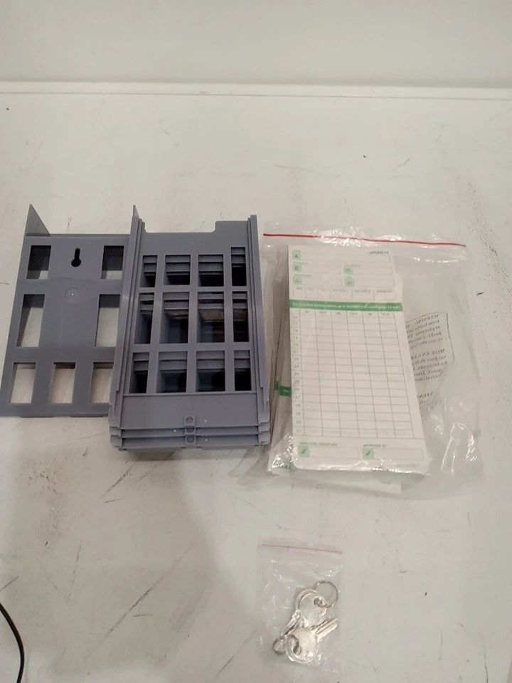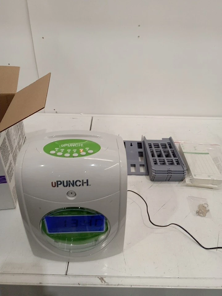I'm selling a uPunch HN3000 time clock, perfect for small businesses. This specific unit is in great working condition and comes with a card rack, time cards, and keys.