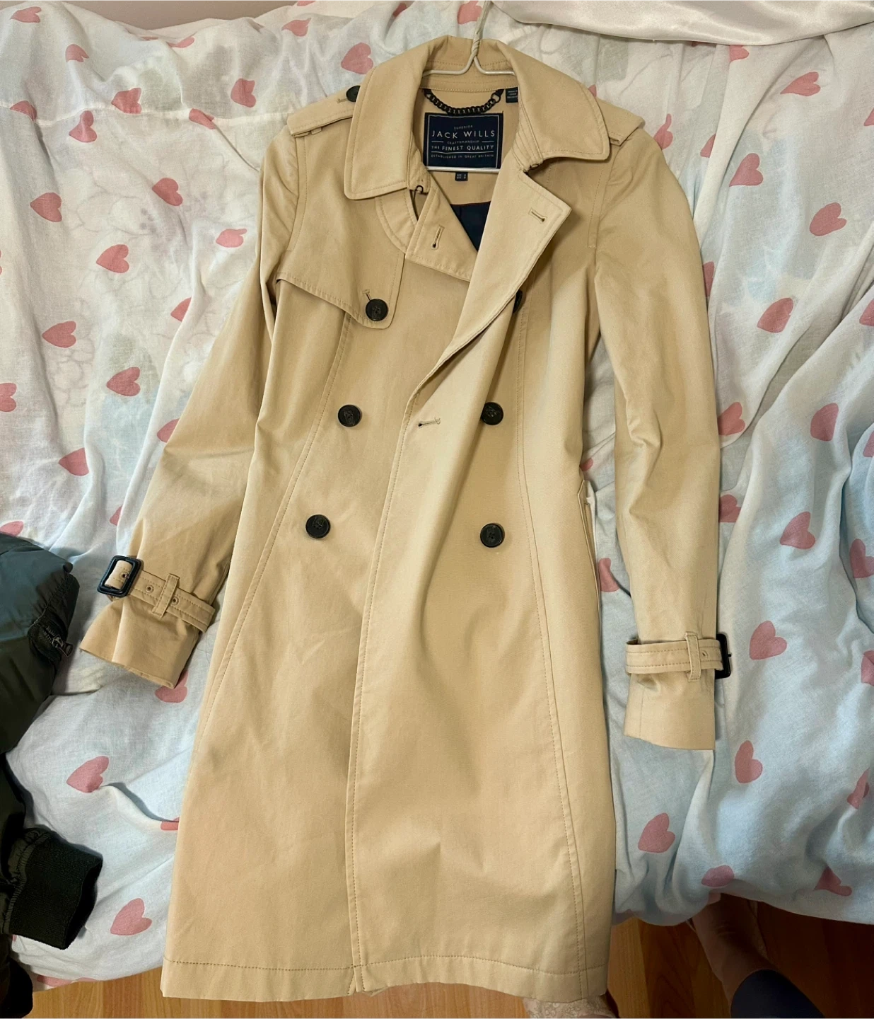 Selling a Jack Wills trench coat in great condition! It's a size 6 and perfect for spring or fall. The classic design and neutral colour make it a versatile addition to any wardrobe