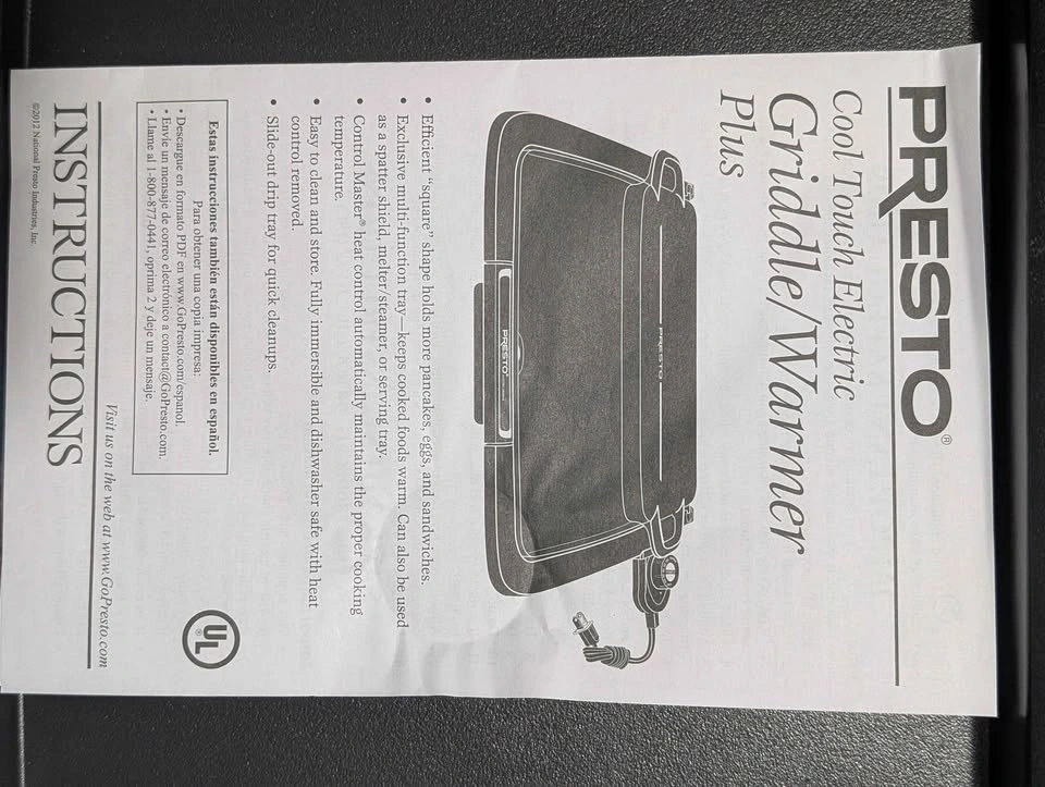 Selling this Presto Cool-Touch Electric Griddle has never been used.