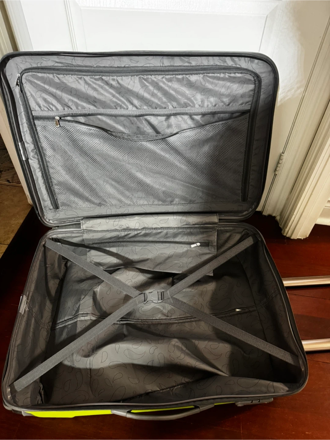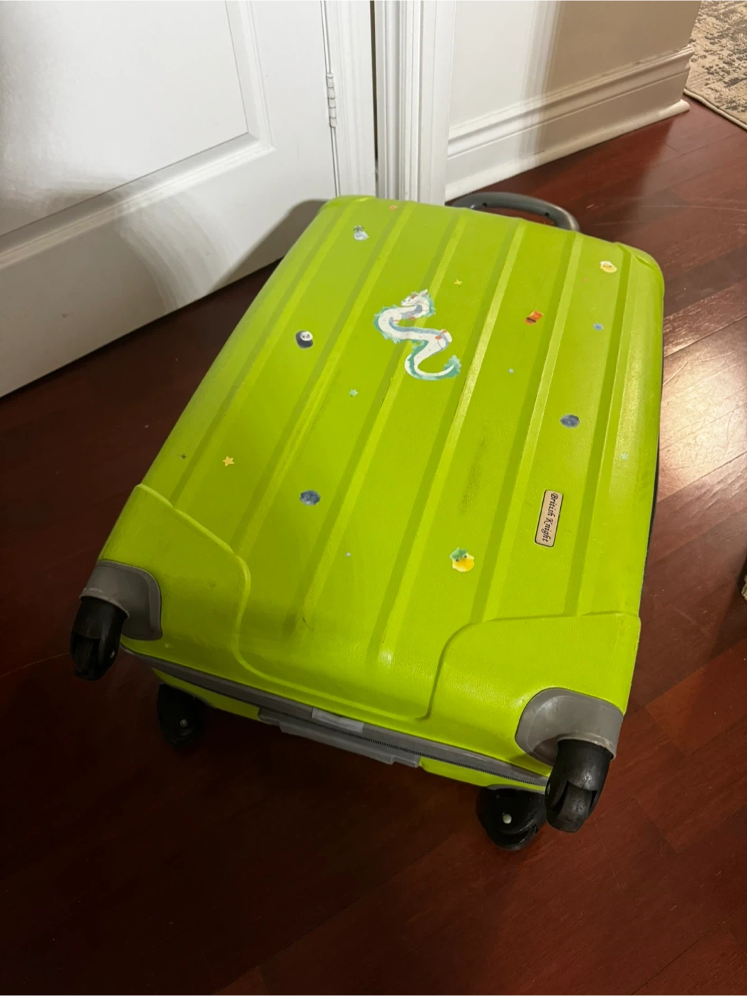 Selling a British Knight suitcase in a vibrant green color. It's got a retractable handle and wheels for easy transport. The inside is spacious with compartments to keep your belongings organized.