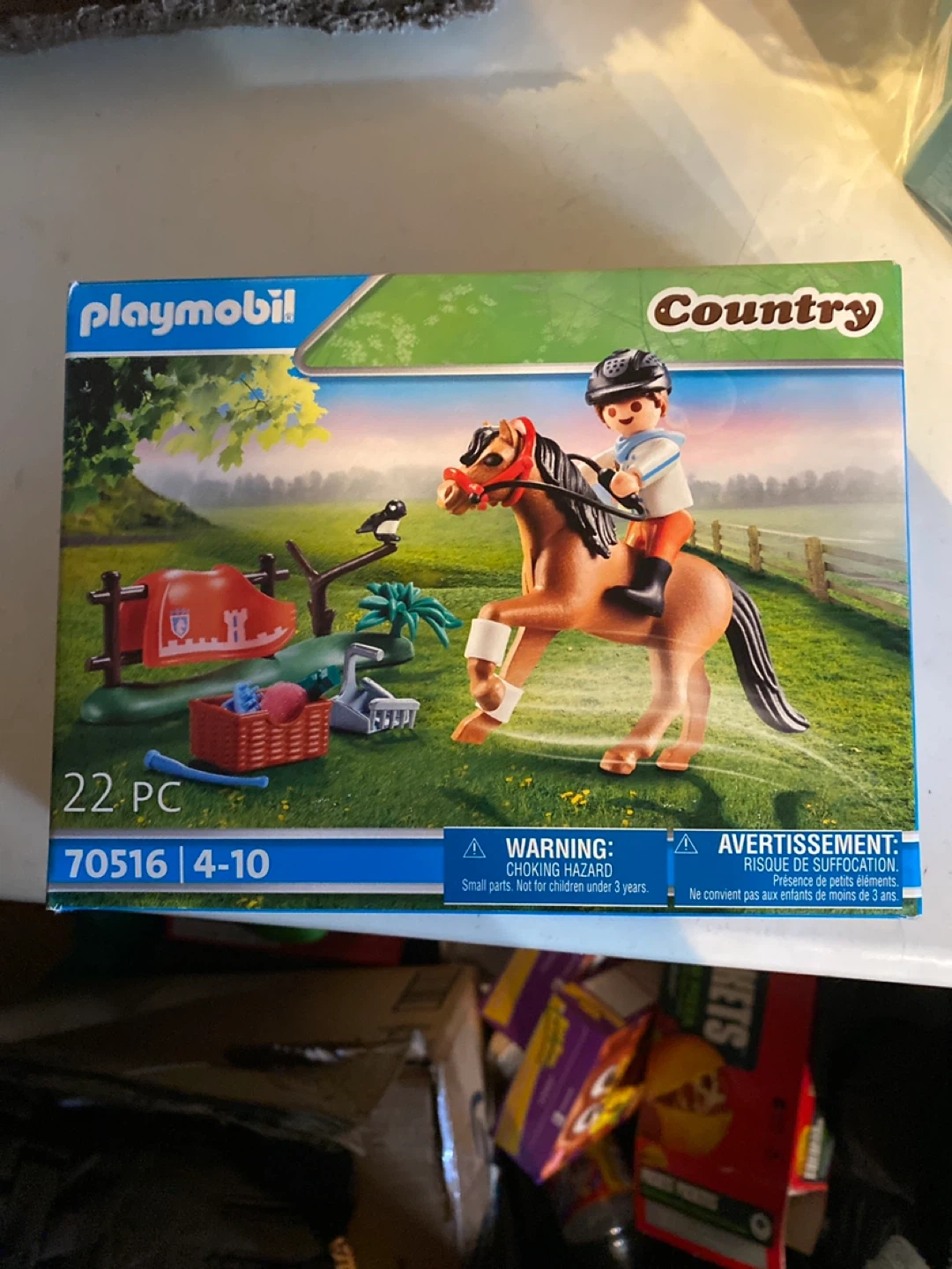 Selling a Playmobil Country set, number 70516. It's a fun horseback riding set for kids aged 4-10. The box includes 22 pieces to create your own country adventure!