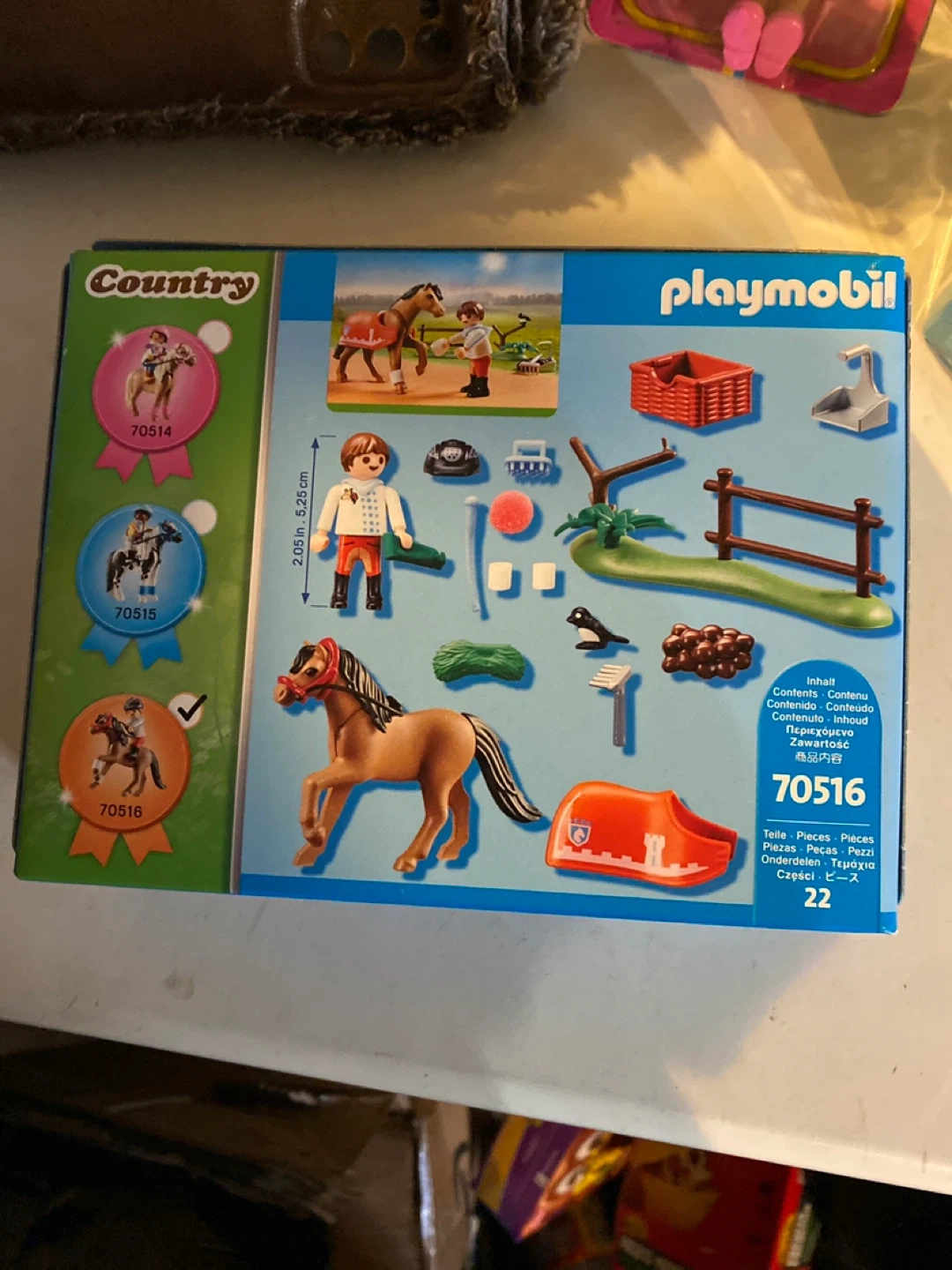 Selling a Playmobil Country set, number 70516. It's a fun horseback riding set for kids aged 4-10. The box includes 22 pieces to create your own country adventure!