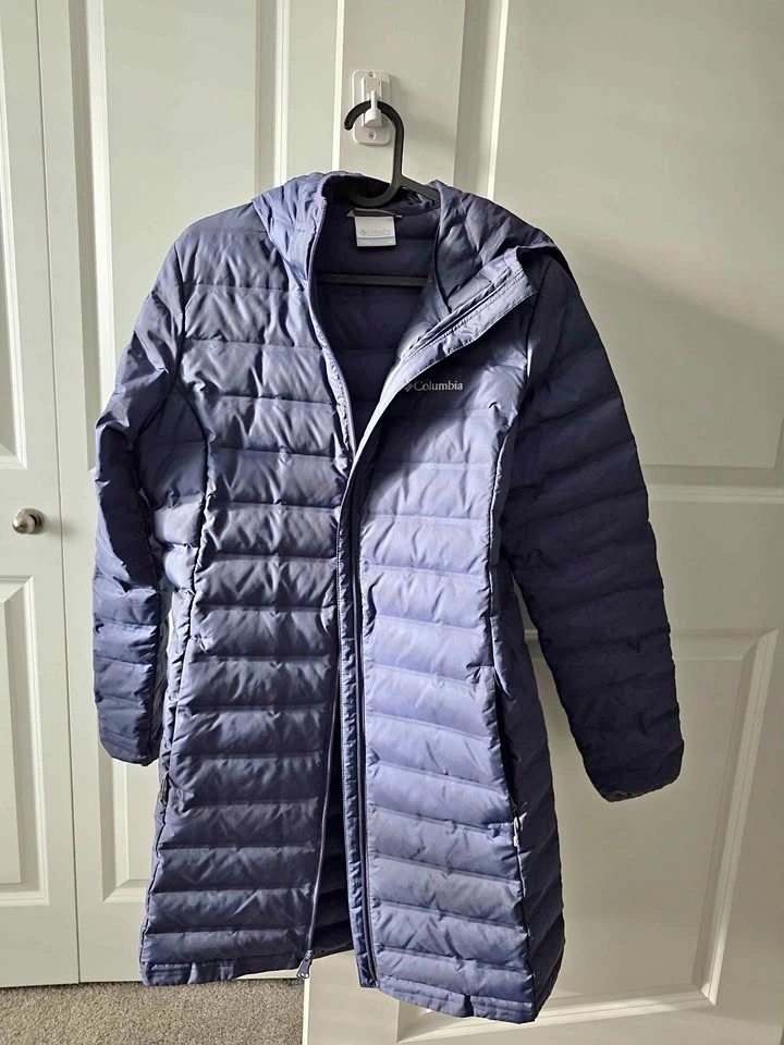 Gently used Columbia women’s long puffer jacket in size Medium.