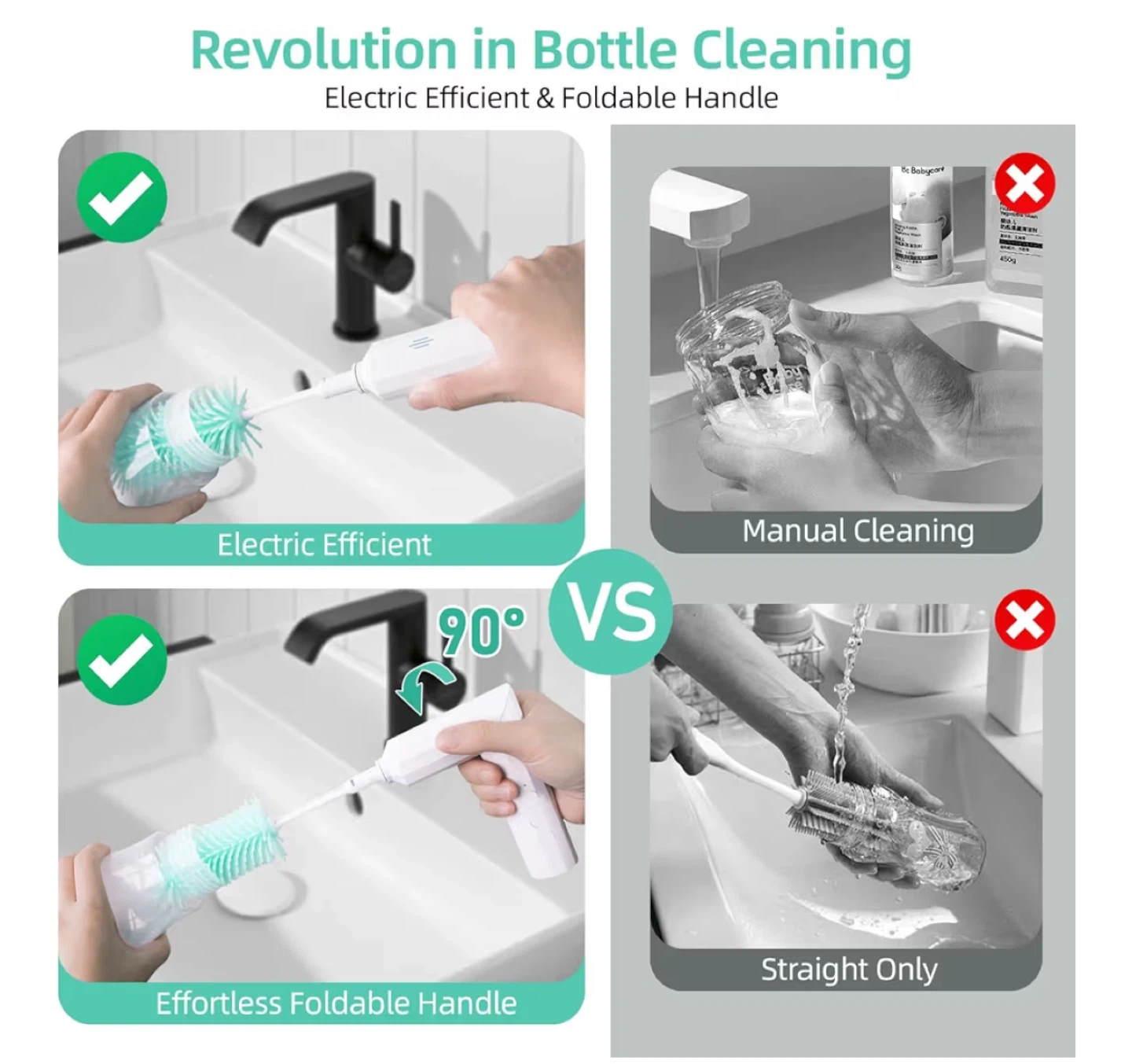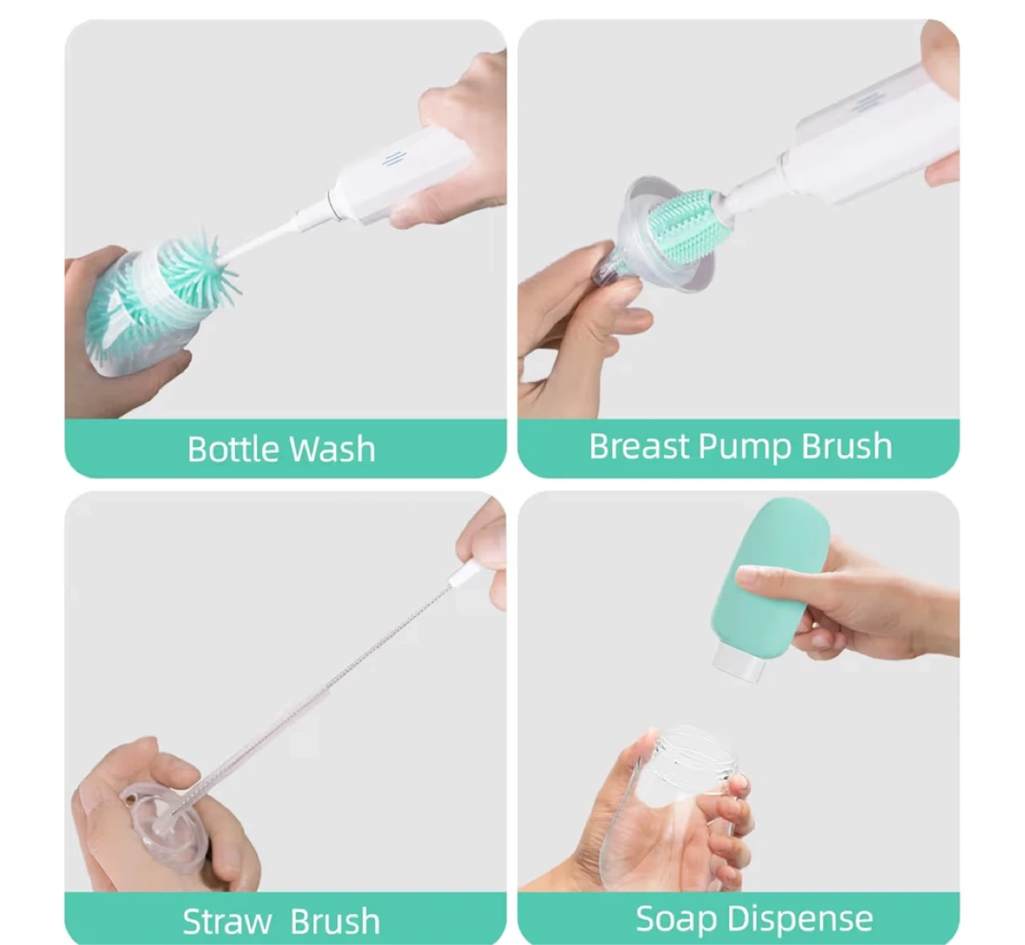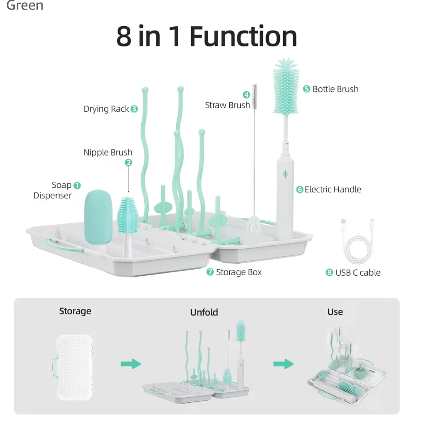 8-in-1 Electric Baby Bottle Brush Set - Green
