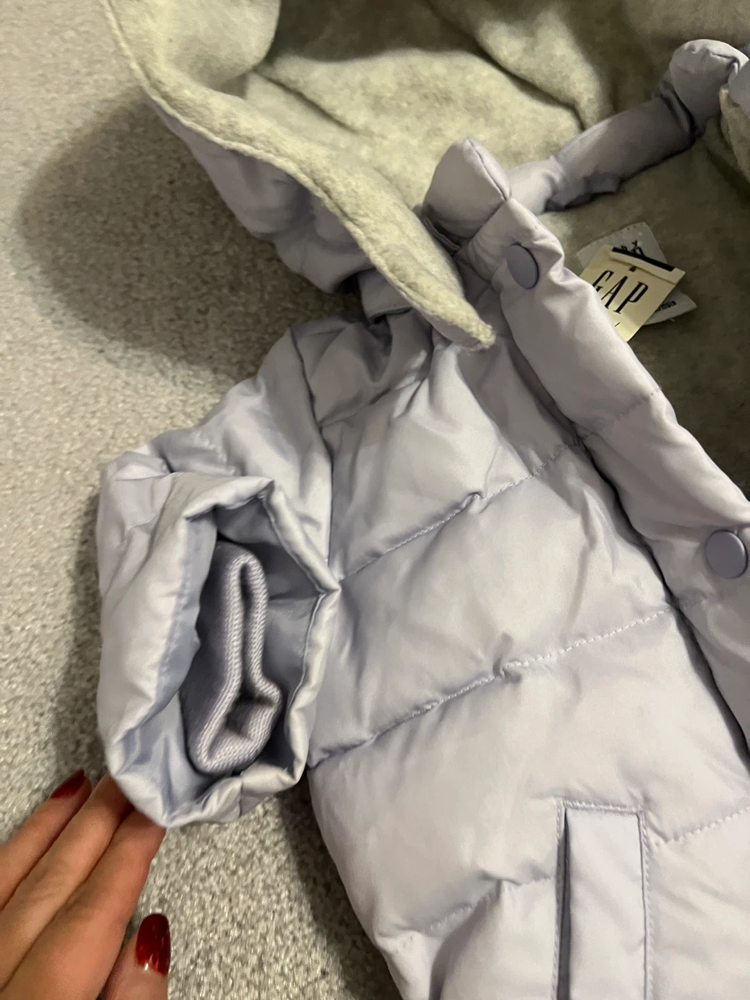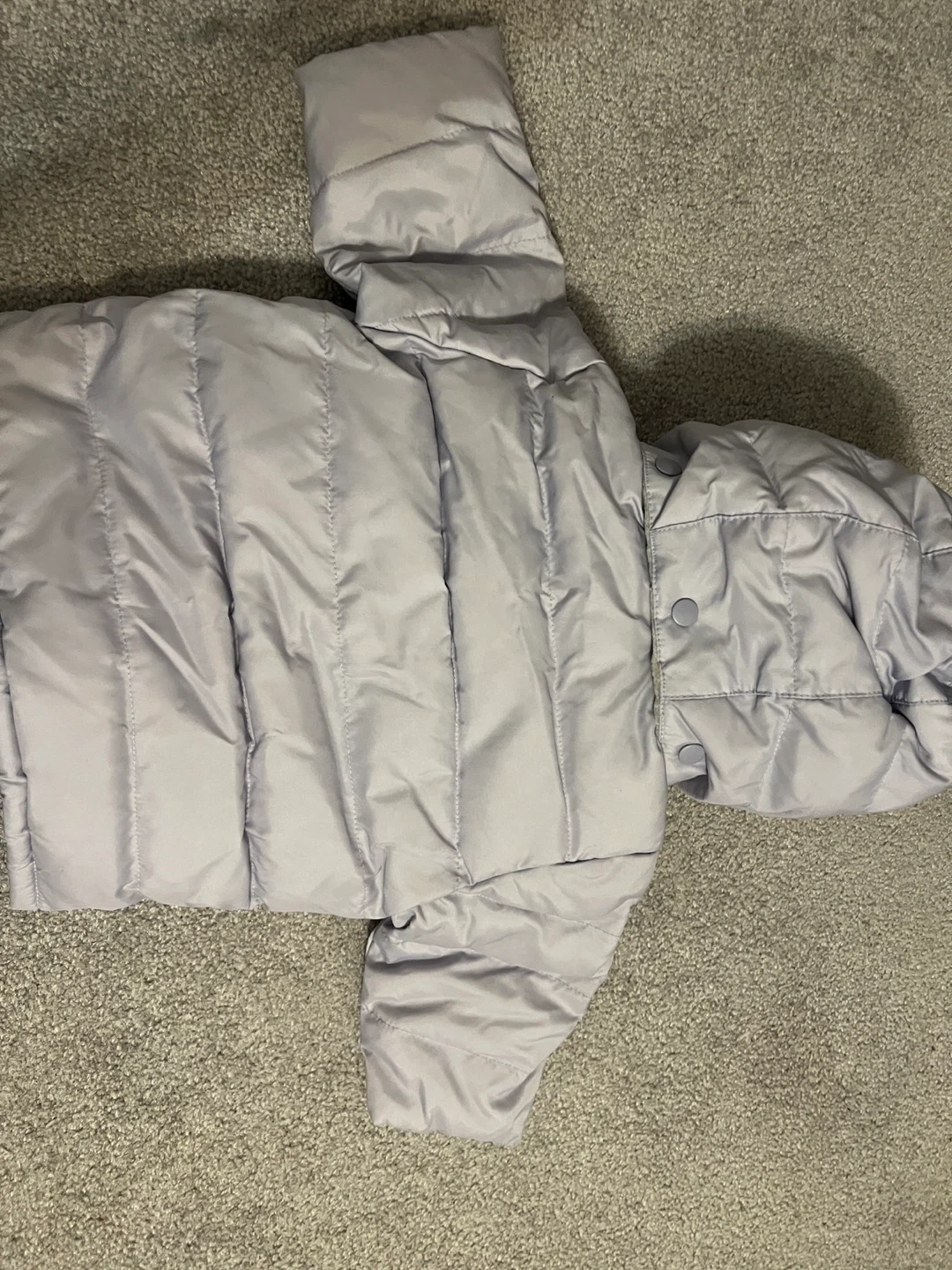 Selling a Baby Gap puffer jacket in size 3-6 months. It's a light purple colour and brand new. Perfect for keeping your little one warm!
