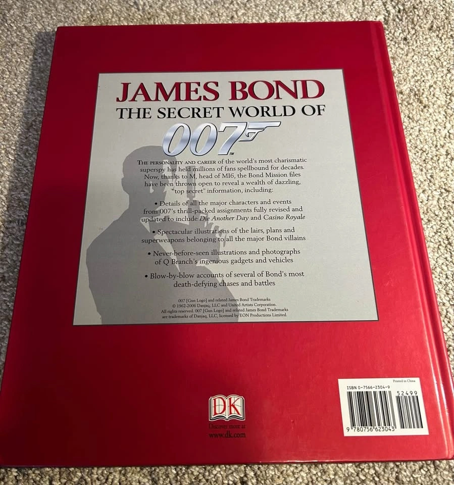 James Bond the Secret World of 007 is a 160 page book taking you through all the major characters, with spectacular illustrations and super weapons from 1962-2006. I live in Arbour Lake Area NW part of the city