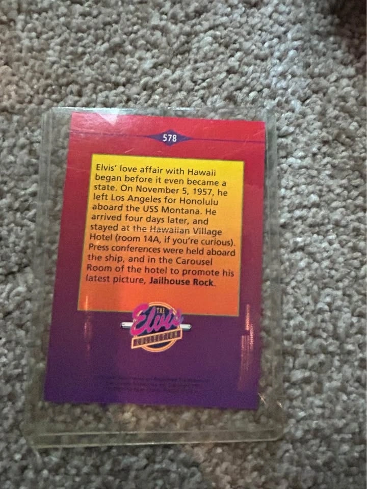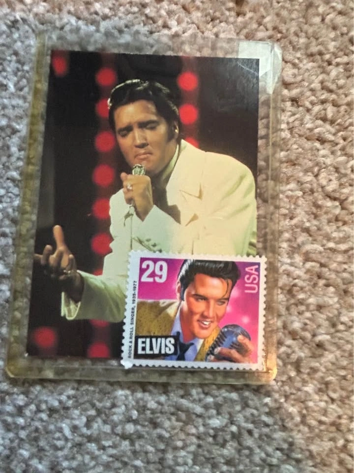 This is the collection of 21 Elvis cards. They are in a plastic holder. Some of them have two and some of them have one in the holders. Each one has information about the card on the back. Plus one as a Elvis stamp that was bought quite a few years ago. Please ask any questions or if more photos are needed. I live in Arbour Lake area in the northwest part of the city.