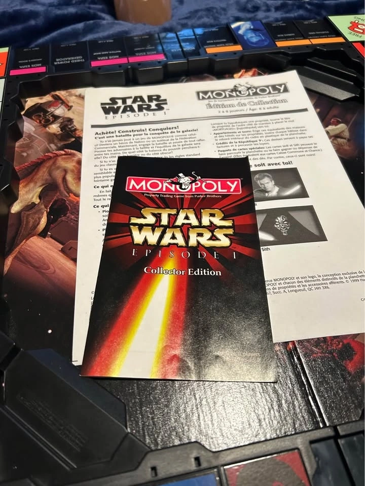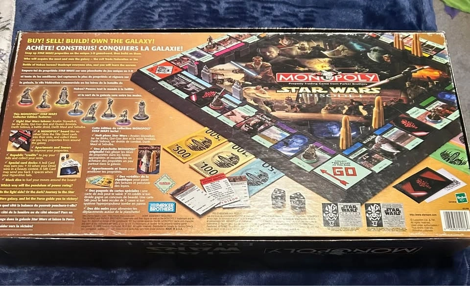 Star Wars Monopoly game that comes with everything you see in the pictures. It’s in its original box with all the pieces. Nothing is missing. In excellent condition. I live in Arbour Lake NW part of city.