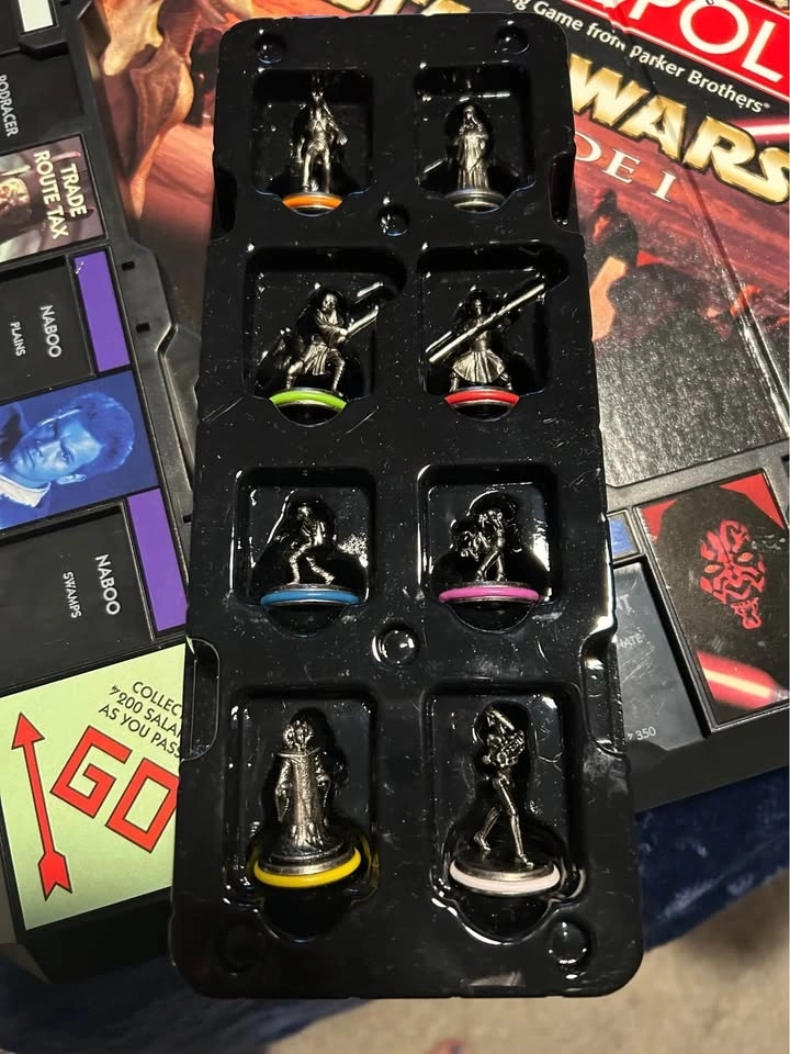Star Wars Monopoly game that comes with everything you see in the pictures. It’s in its original box with all the pieces. Nothing is missing. In excellent condition. I live in Arbour Lake NW part of city.