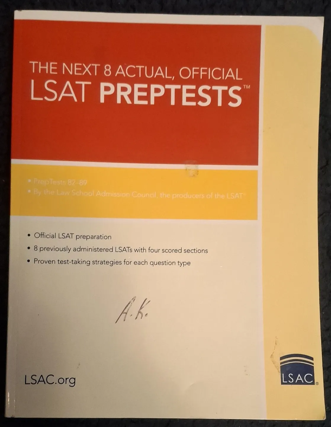 Selling "The Next 8 Actual, Official LSAT PrepTests". This includes PrepTests 82-89, official LSAT preparation, 8 previously administered LSATs with four scored sections, and proven test-taking strategies for each question type
