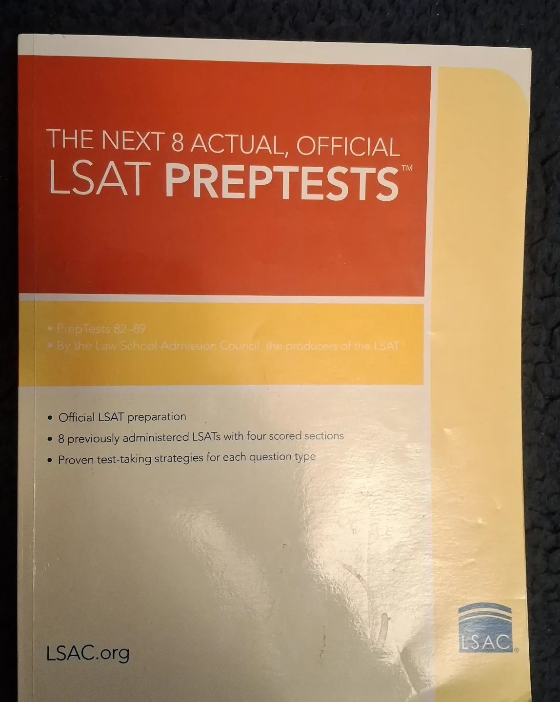 Selling 'The Next 8 Actual, Official LSAT PrepTests' book! It includes PrepTests 82-89, officially administered by the Law School Admission Council. This book provides official LSAT preparation, including 8 previously administered LSATs with four scored sections, and proven test-taking strategies for each question type