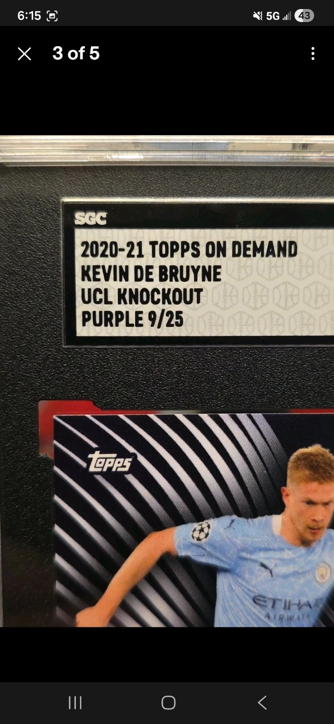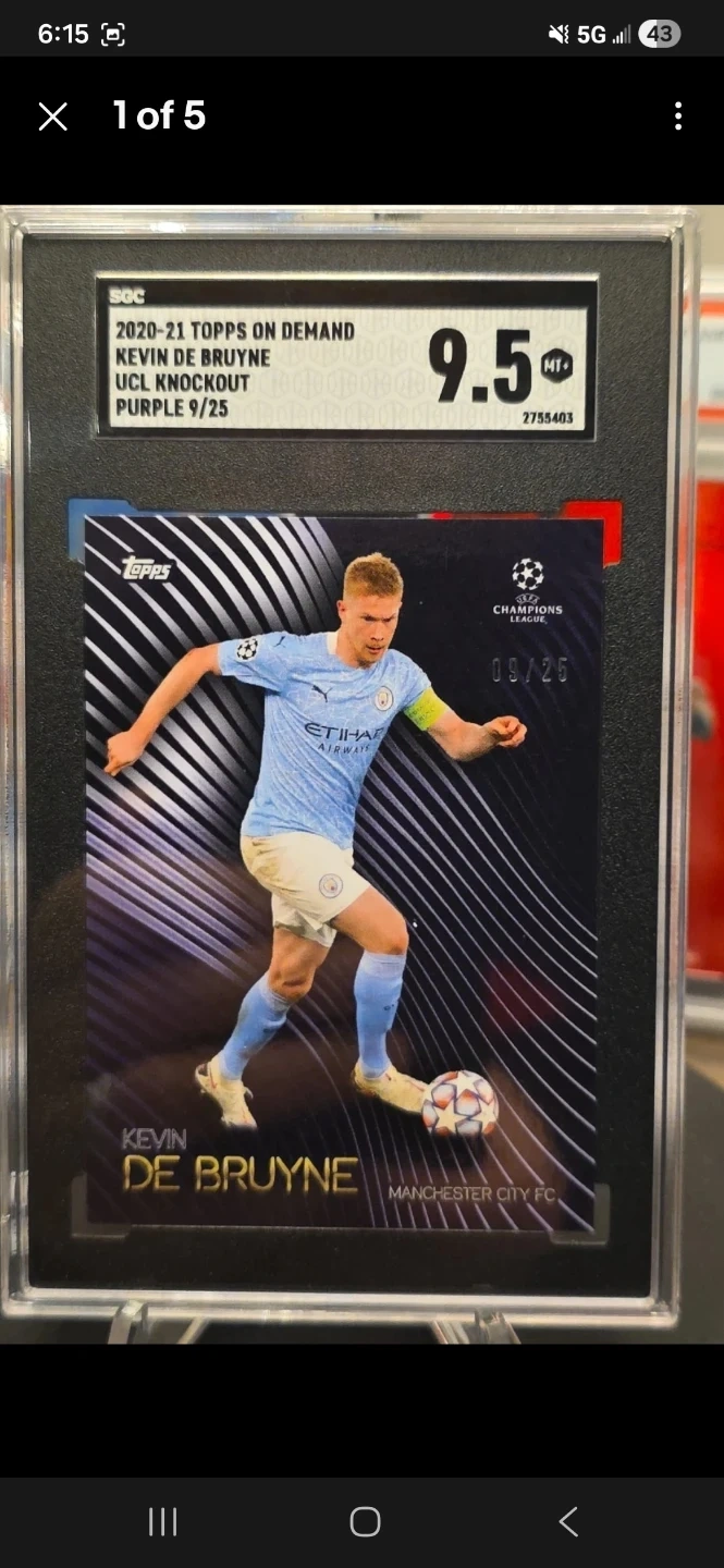 Buy & SellKevin De Bruyne Topps On Demand Purple 9/25 SGC 9.5Kevin De Bruyne Topps On Demand Purple 9/25 SGC 9.5$40Selling a Kevin De Bruyne 2020-21 Topps On Demand UCL Knockout Purple 9/25 soccer card graded by SGC as 9.5 MT+.WHERE TO MEEToutside my houseView MapSELLERverifiedgastonWashington Heights872 reviews0 chats·0 favorites·4 viewsSEND CHAT TO SELLERHi gaston! I’m interested in your listing.Hi gaston! I’m interested in your listing.Get the Karrot app to chatSign In to chat