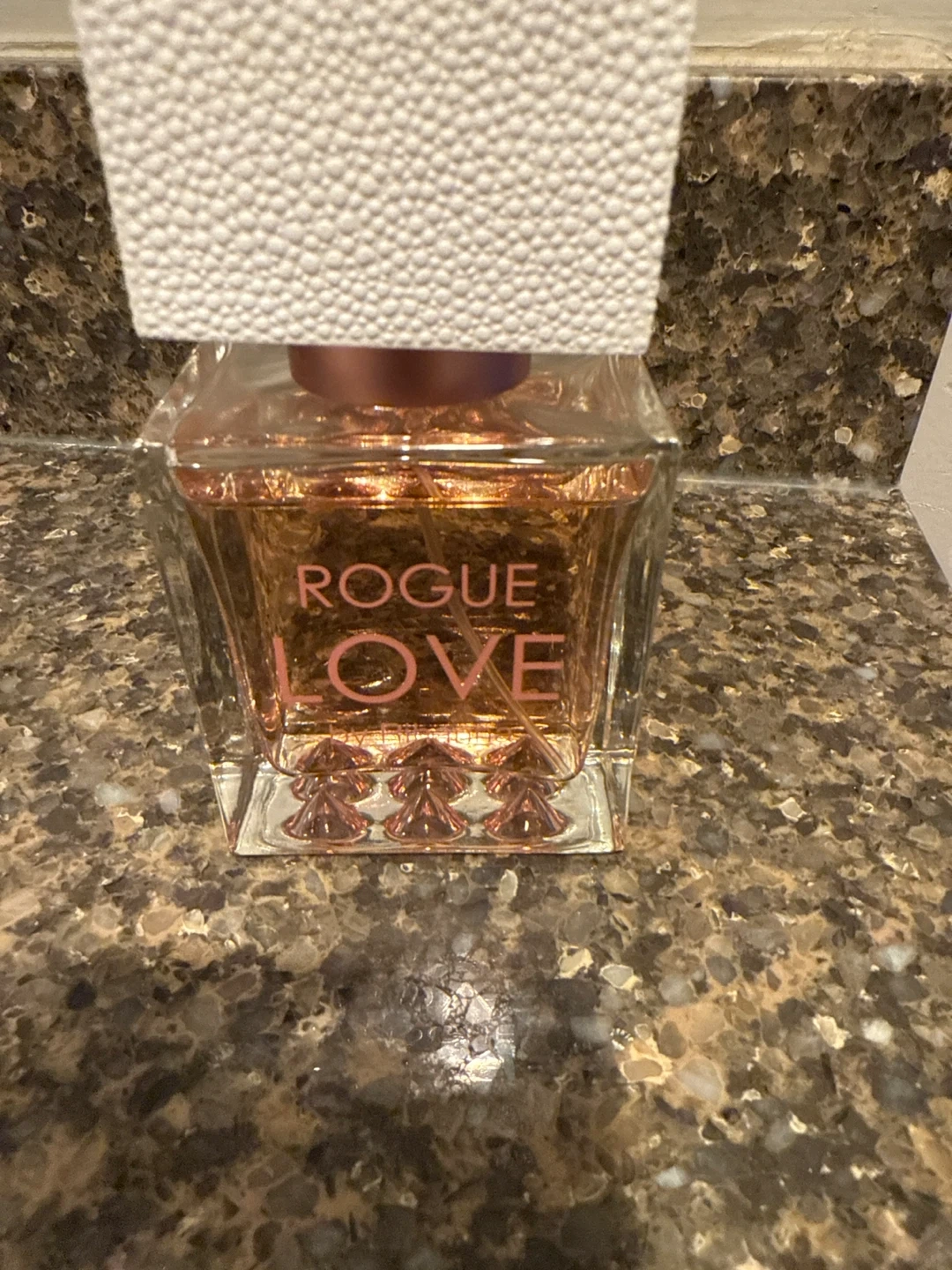 Selling a bottle of Rogue Love by Rihanna. It's an Eau de Parfum spray, with 2.5 FL OZ (75 mL). The box is included!