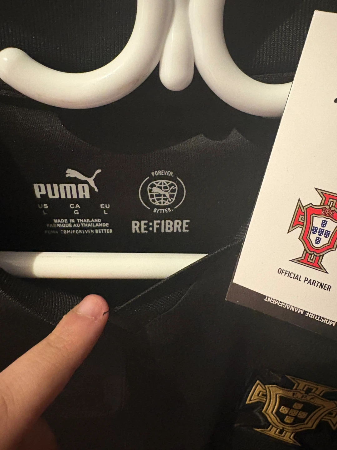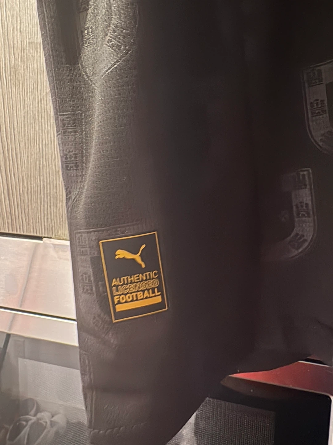 Selling a Puma Portugal jersey in black. It features the Puma logo and the Portugal national team crest. The jersey has a stylish design with detailed accents on the collar and sleeves. Perfect for any fan! New with tags!
