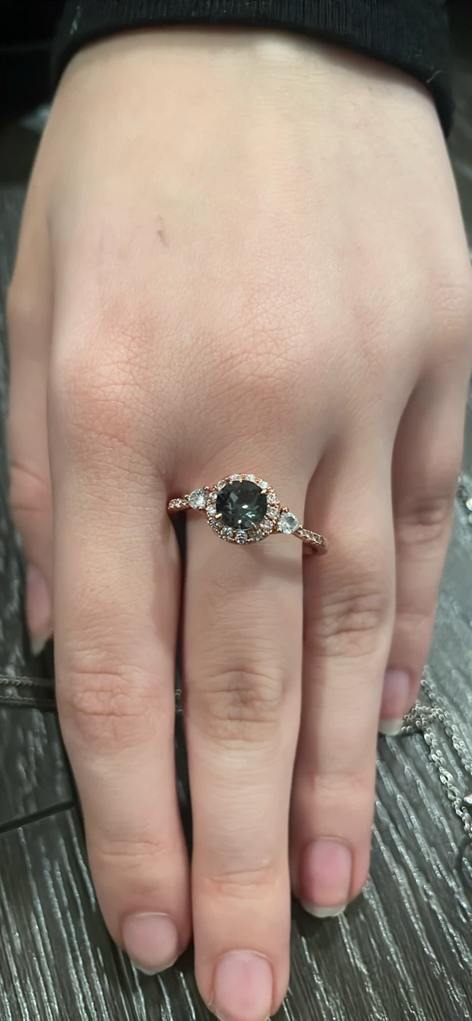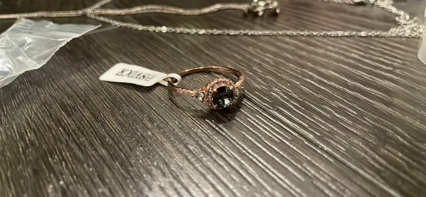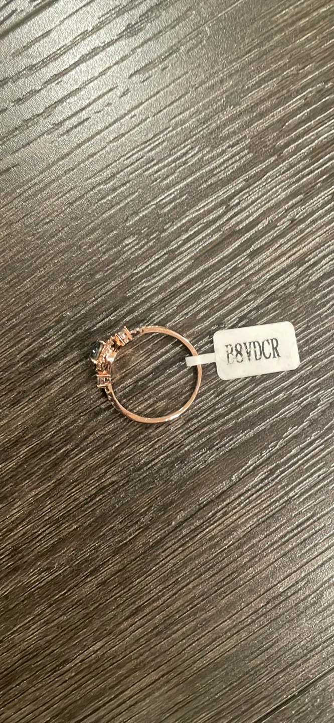 Selling a beautiful rose gold ring featuring a dark-coloured stone. It's in great condition and ready to wear!