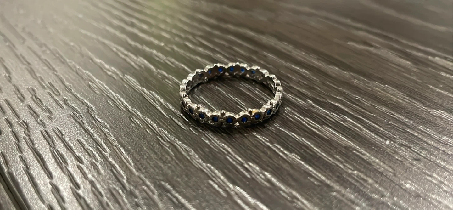 Selling a beautiful silver ring adorned with blue stones. It's in great condition and ready to add a touch of elegance to your collection