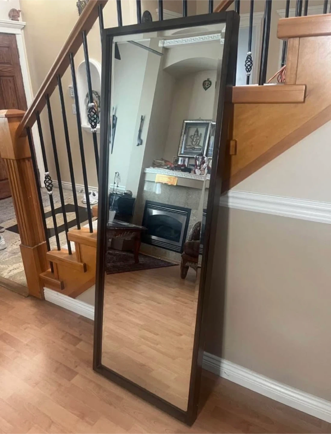 Selling a full length mirror with a dark brown frame. It’s in great condition and ready to be added to your home decor! It would look great in any room!