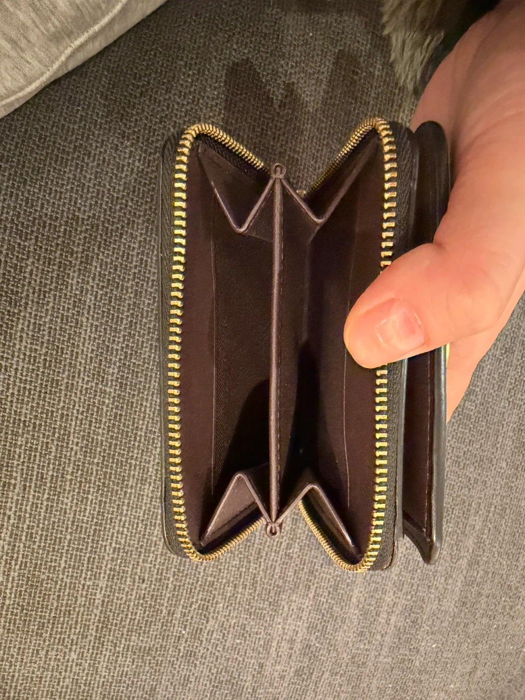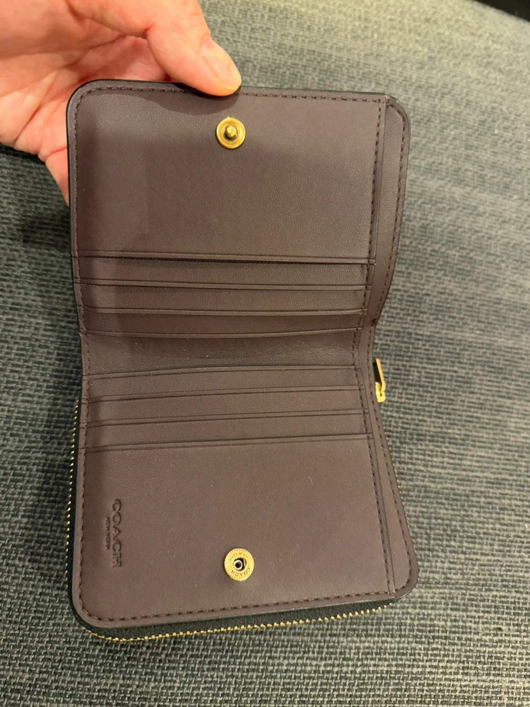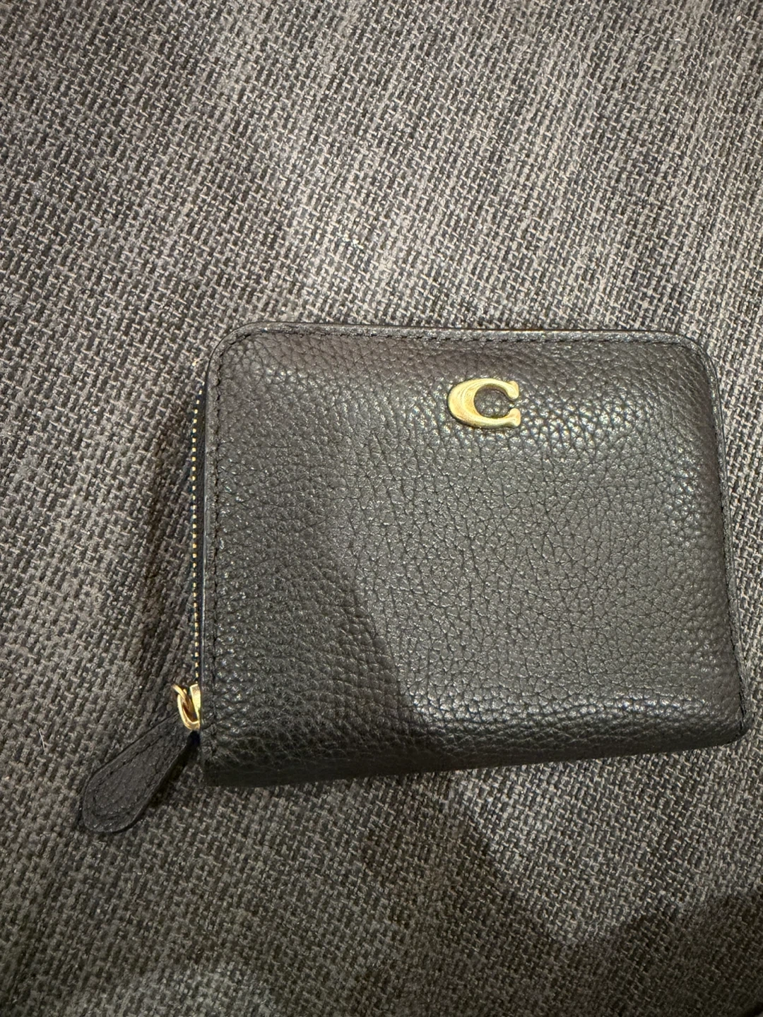 Selling a Coach small zip around wallet in black leather! The leather Feels ultra soft! It's in great condition. Features a secure zip closure and the classic Coach logo. Purchased at coach boutique store at town centre mall.