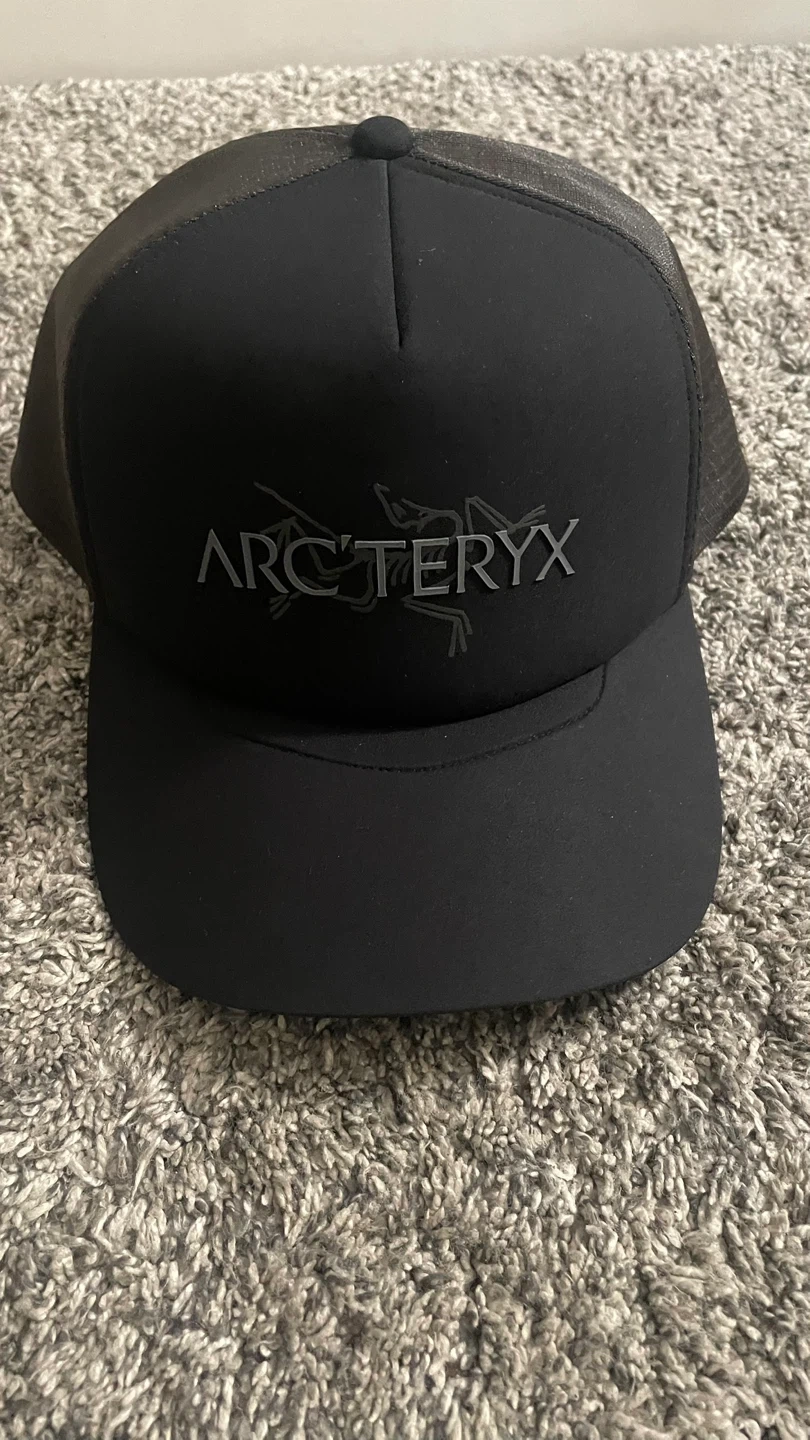Selling an Arc'teryx Bird Word Trucker Hat. It's a size L/G-XL/TG and features a Fair Trade Certified factory label. The hat is black and in great condition!