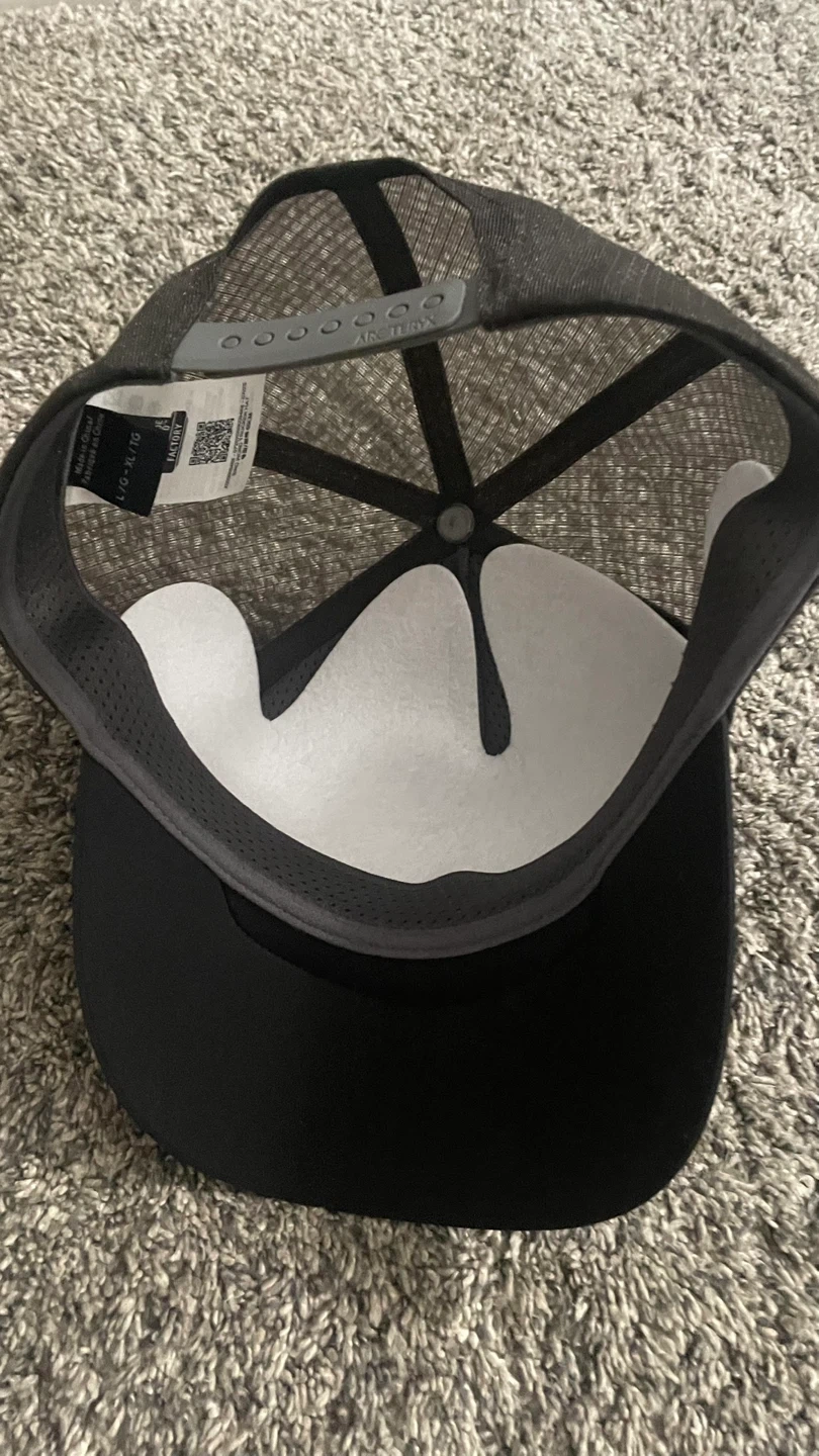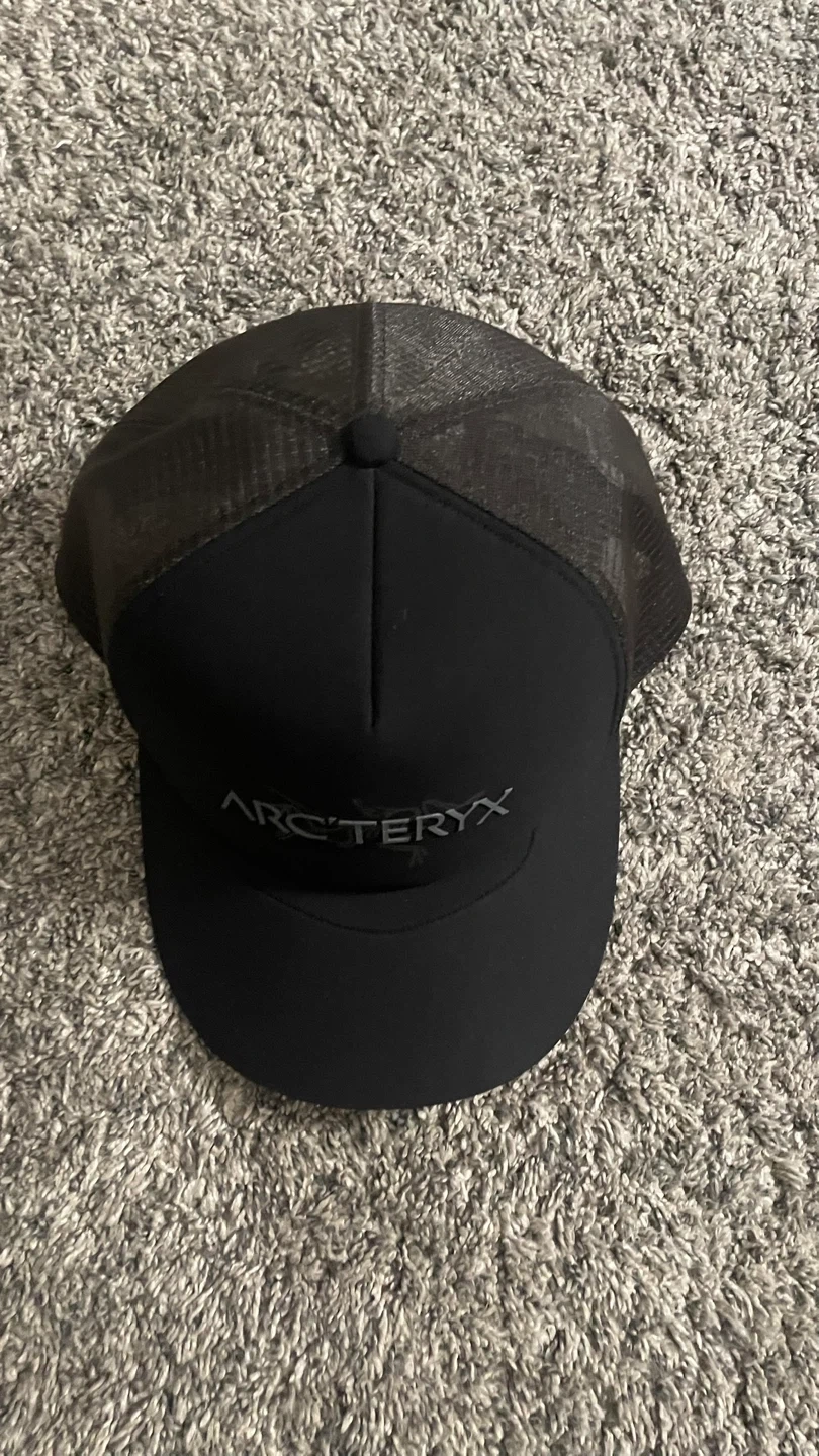 Selling an Arc'teryx Bird Word Trucker Hat. It's a size L/G-XL/TG and features a Fair Trade Certified factory label. The hat is black and in great condition!