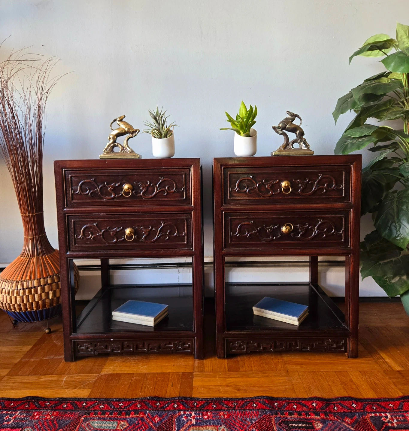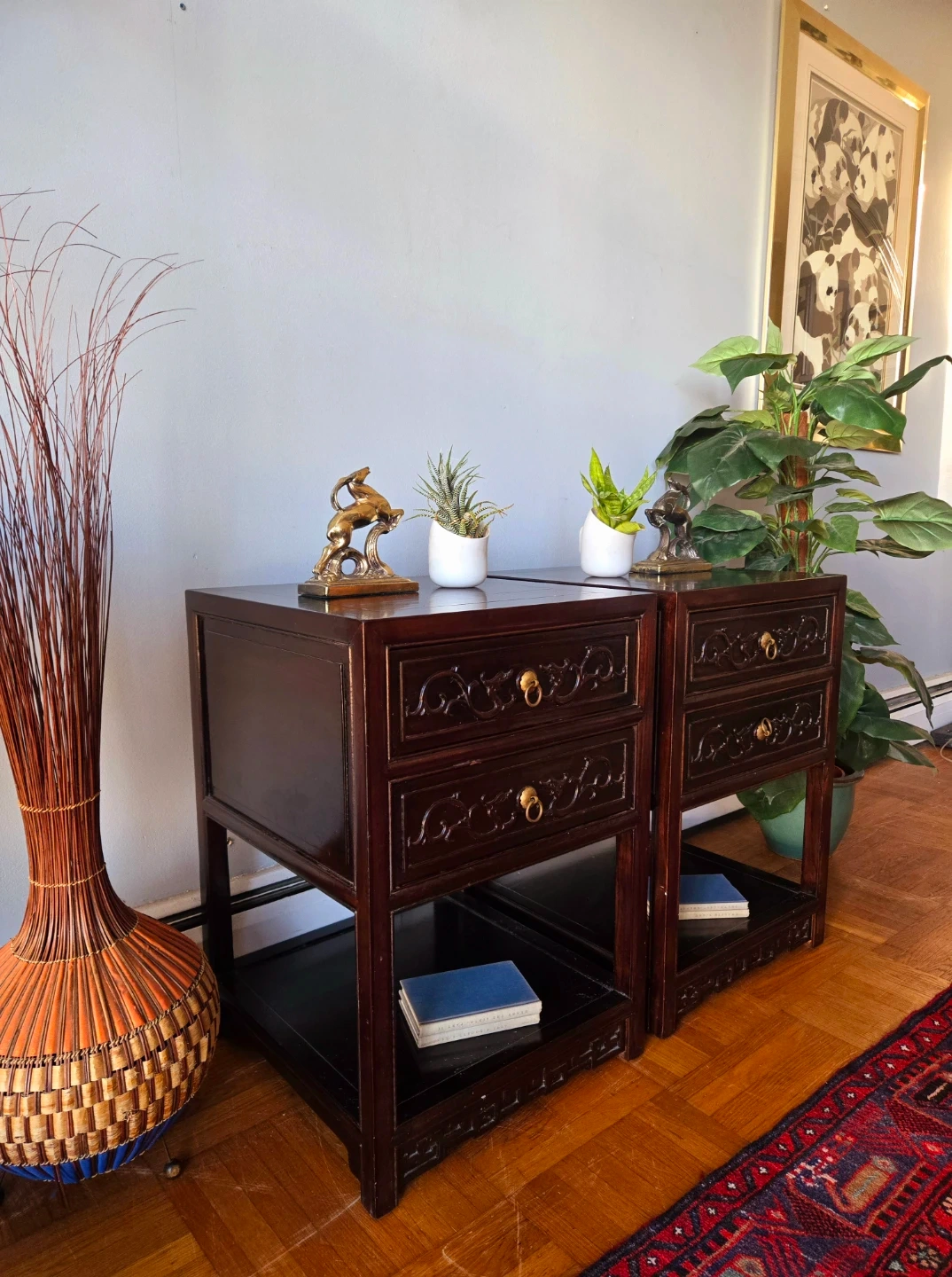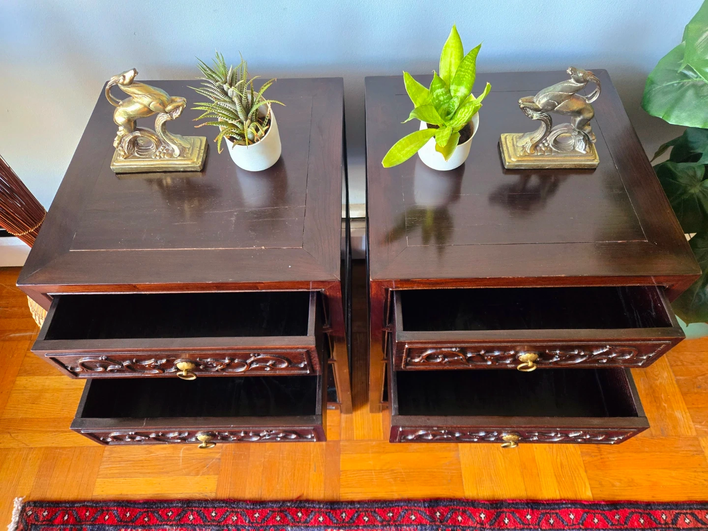 Pair Of Hand Carved Nightstands With 2 Drawers (For Both)