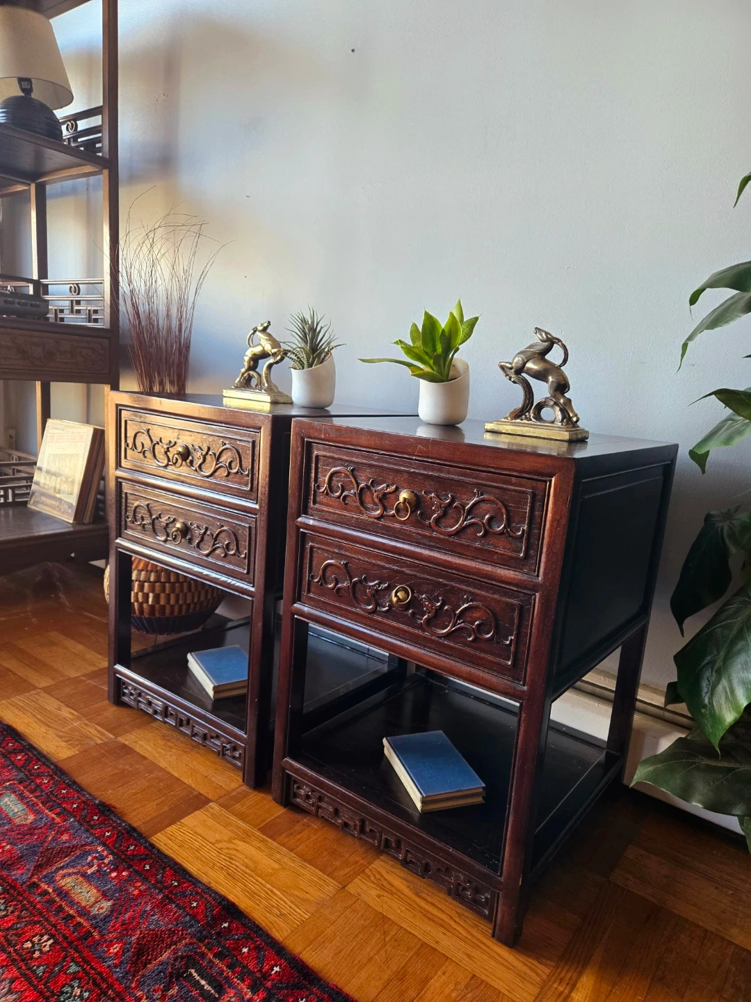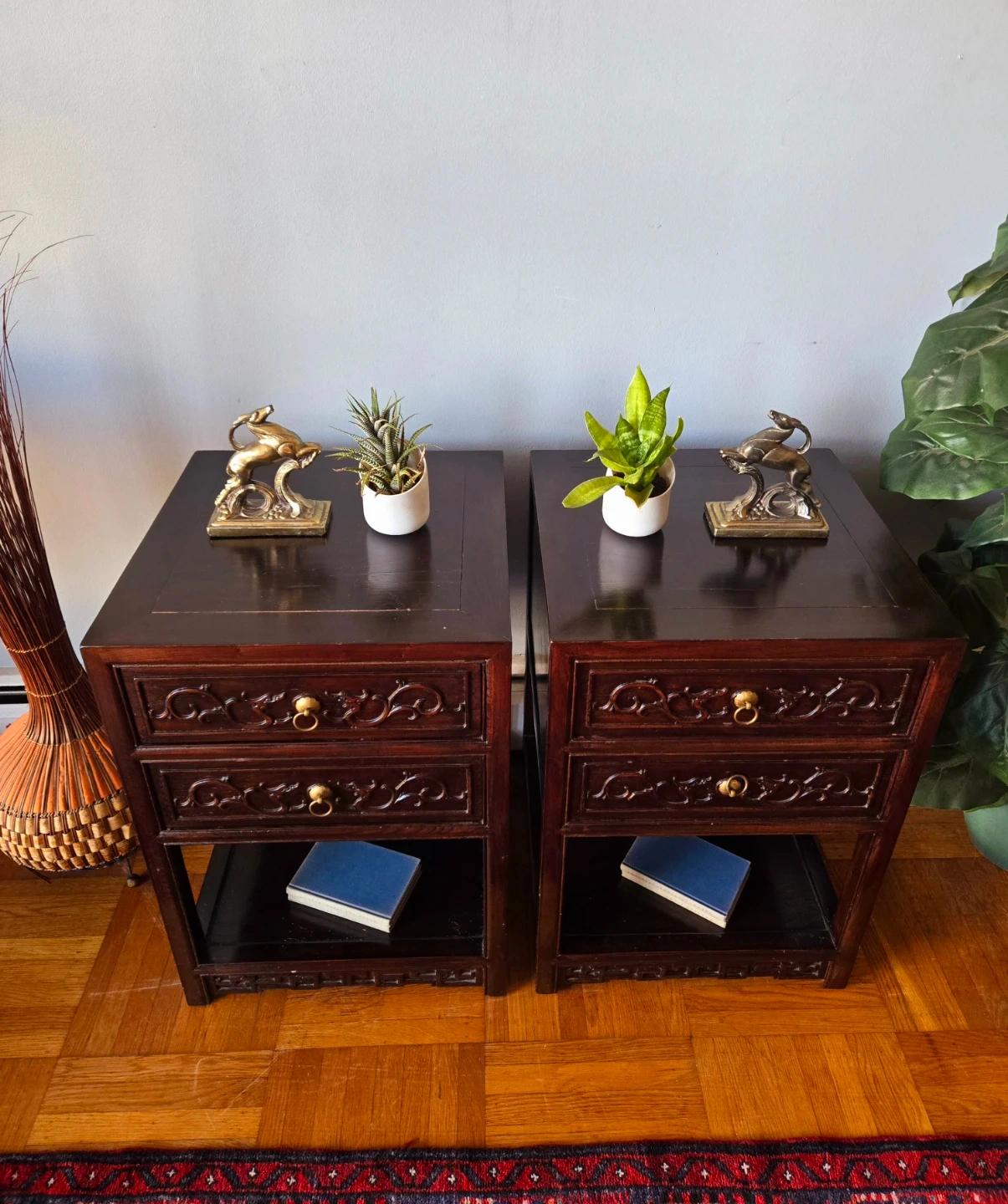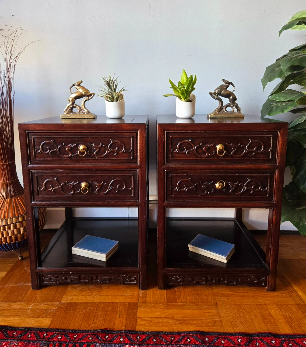 Pair Of Hand Carved Nightstands With 2 Drawers (For Both)
