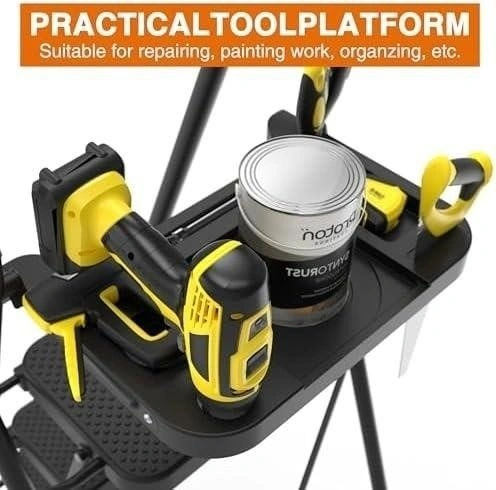 Designed with handrails on both sides and features soft sponge padding. Also comes with a practical tool platform for gloves, wrenches, paint buckets, light bulbs and other tools and equipment.