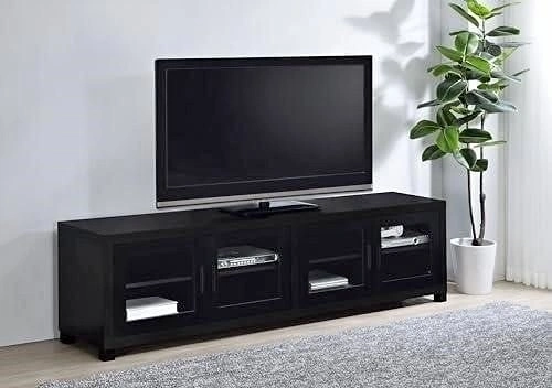 TV stand supports televisions up to 85 inches, perfect for a home cinema setup.