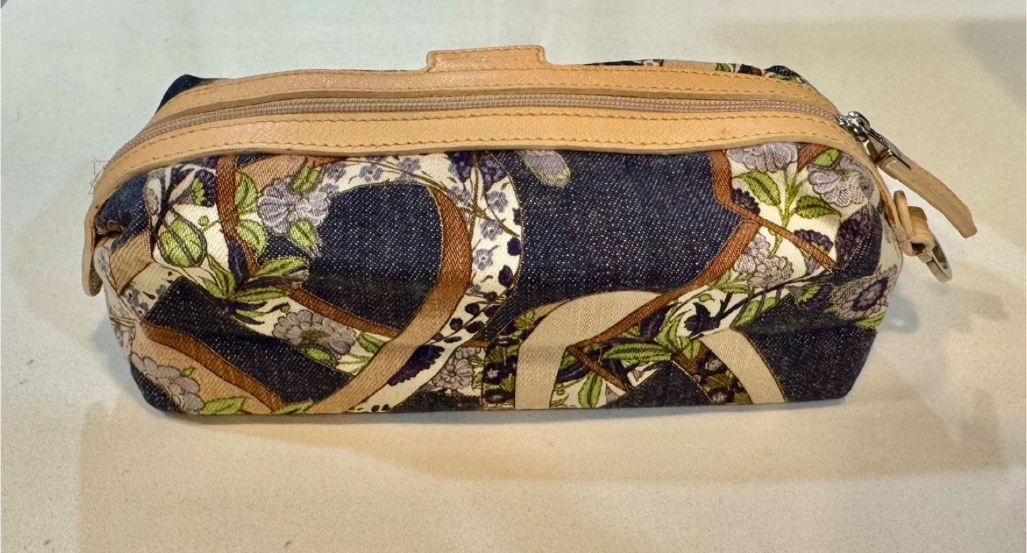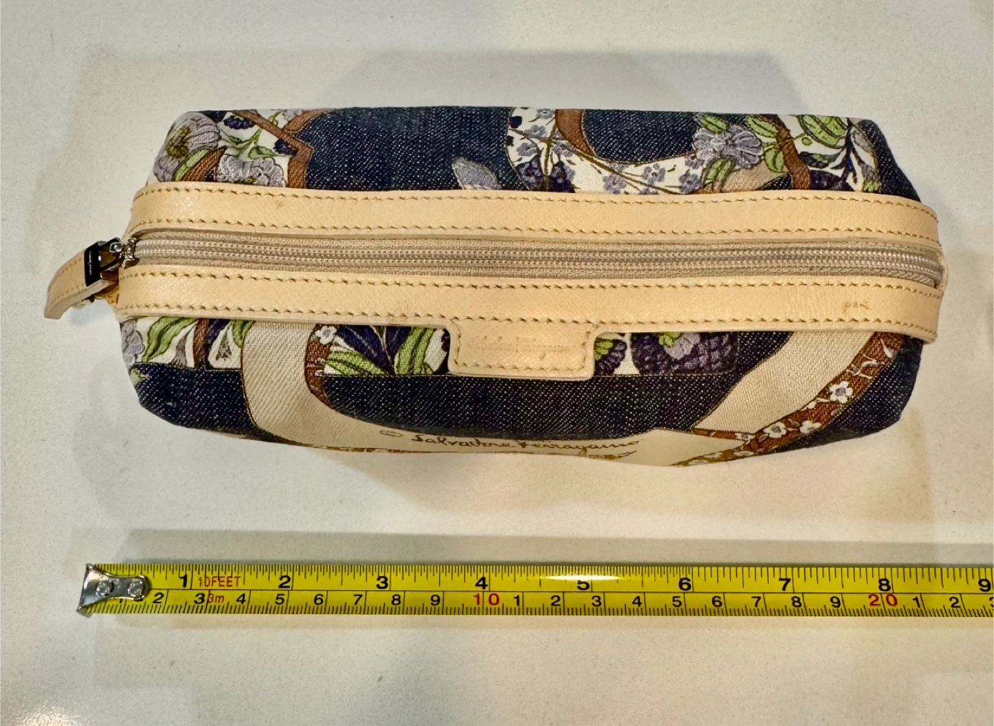 Salvatore Ferragamo Floral with Denim Fabric Cosmetics Pouch_Authentic_NWT