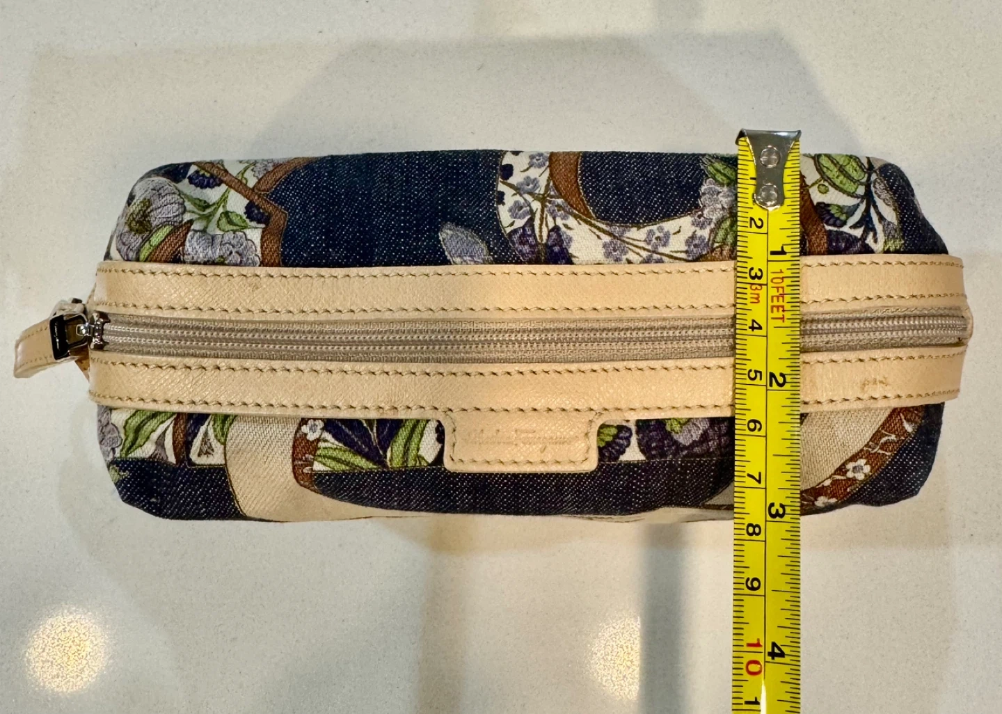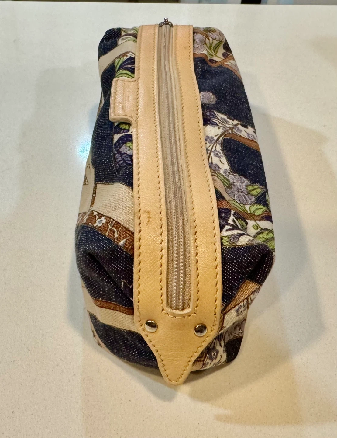 Salvatore Ferragamo Floral with Denim Fabric Cosmetics Pouch_Authentic_NWT