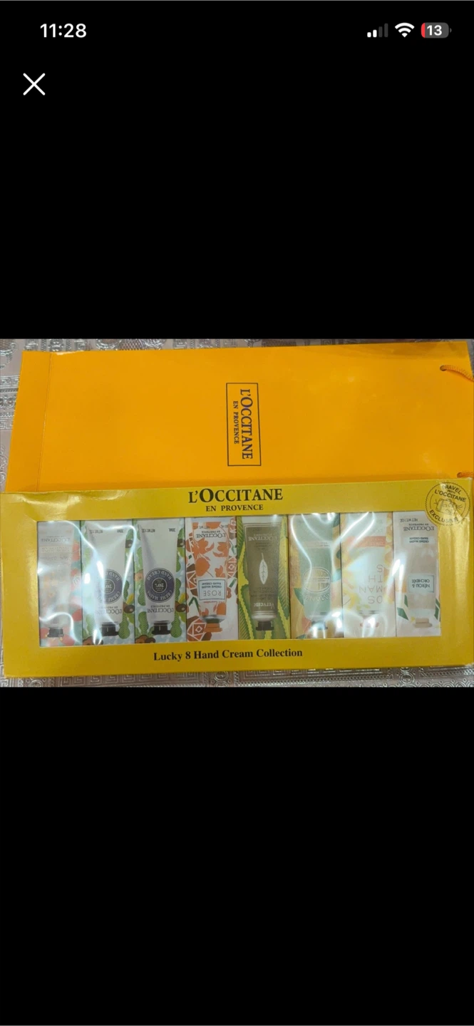 Selling a L'Occitane Lucky 8 Hand Cream Collection! It includes a variety of hand creams in a box. Perfect for keeping your hands moisturized.