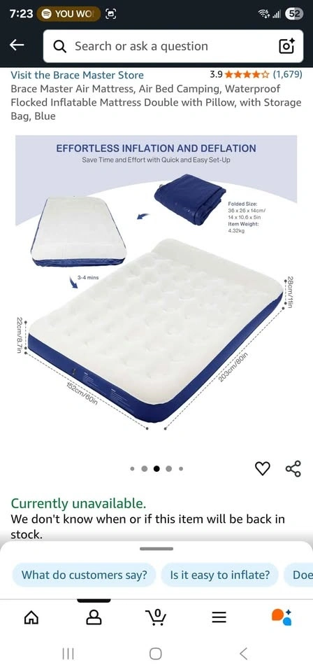 Elegant thick self inflating camping mattress with built in pillow 88x27x3inch $40