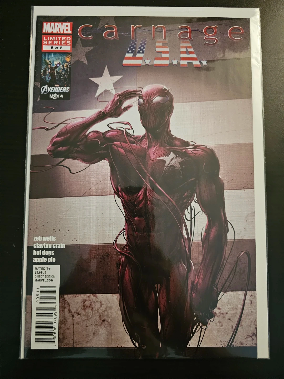 Selling a complete set of Carnage USA, a Marvel limited series comic book. The series consists of 5 issues. Each comic is in great condition!