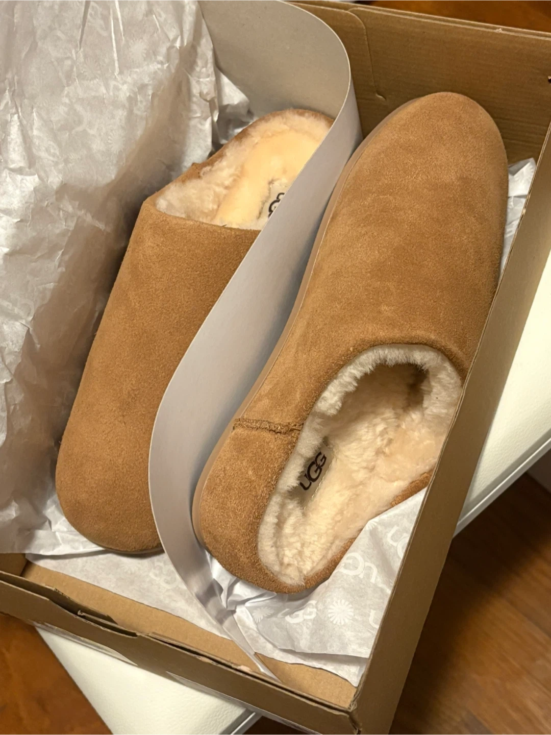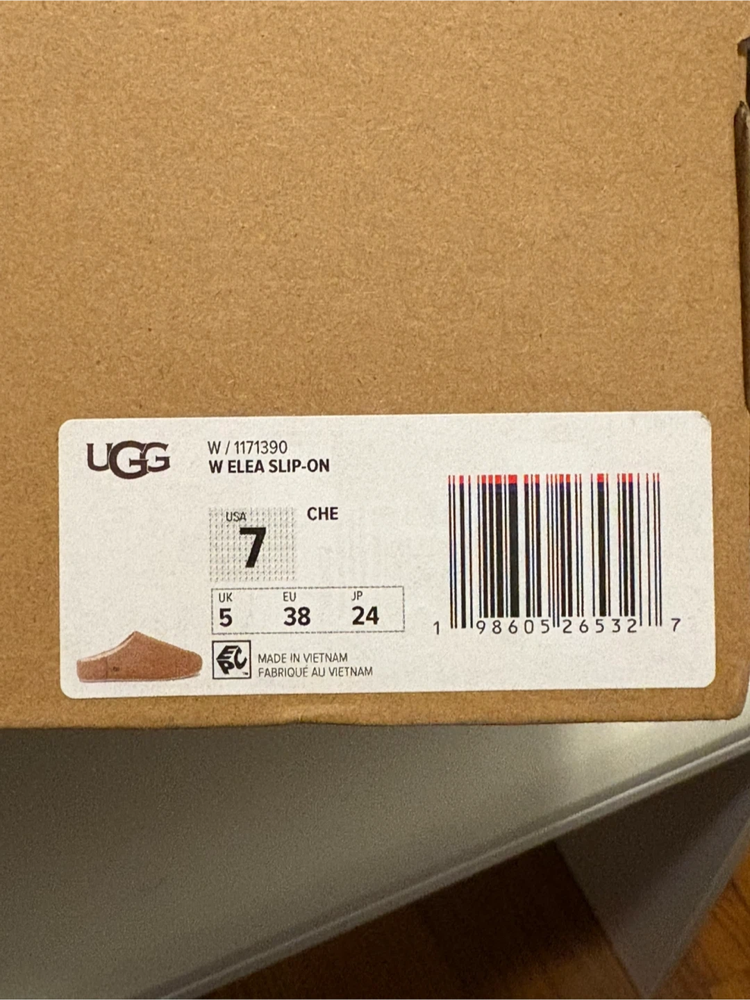 Selling a pair of brand new UGG W Elea Slip-On slippers in size 7. They're a beautiful chestnut colour and come in the original box. This item was gifted but unfortunately not my size and there was no gift receipt!
