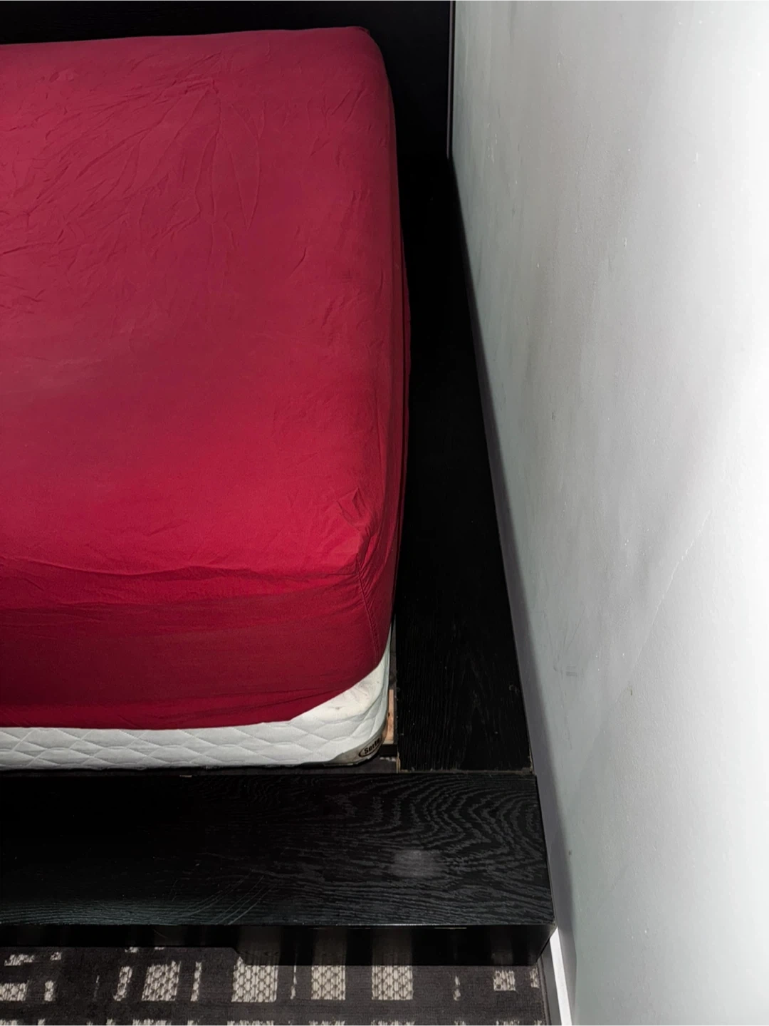 This modern black solid wood queen bed frame offers a sleek, minimalist aesthetic to any bedroom. It’s in good condition, featuring a sturdy construction and a low-profile design. It's perfect for those who appreciate modern design and quality craftsmanship. While it has been used, it remains in great shape and ready to support your queen-size mattress for a comfortable night's sleep.