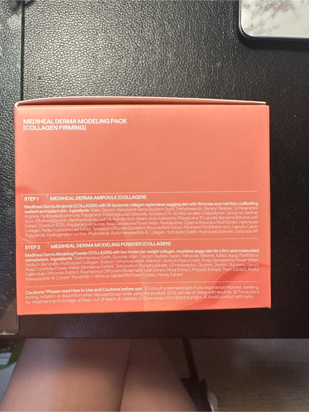 I'm selling a brand new MEDIHEAL Derma Modeling Pack in the Collagen Firming variety! It's designed to replenish sagging skin and give you a firm, moisturized complexion. The box includes both the derma ampoule and the modeling powder, so you have everything you need for a spa-like treatment at home
