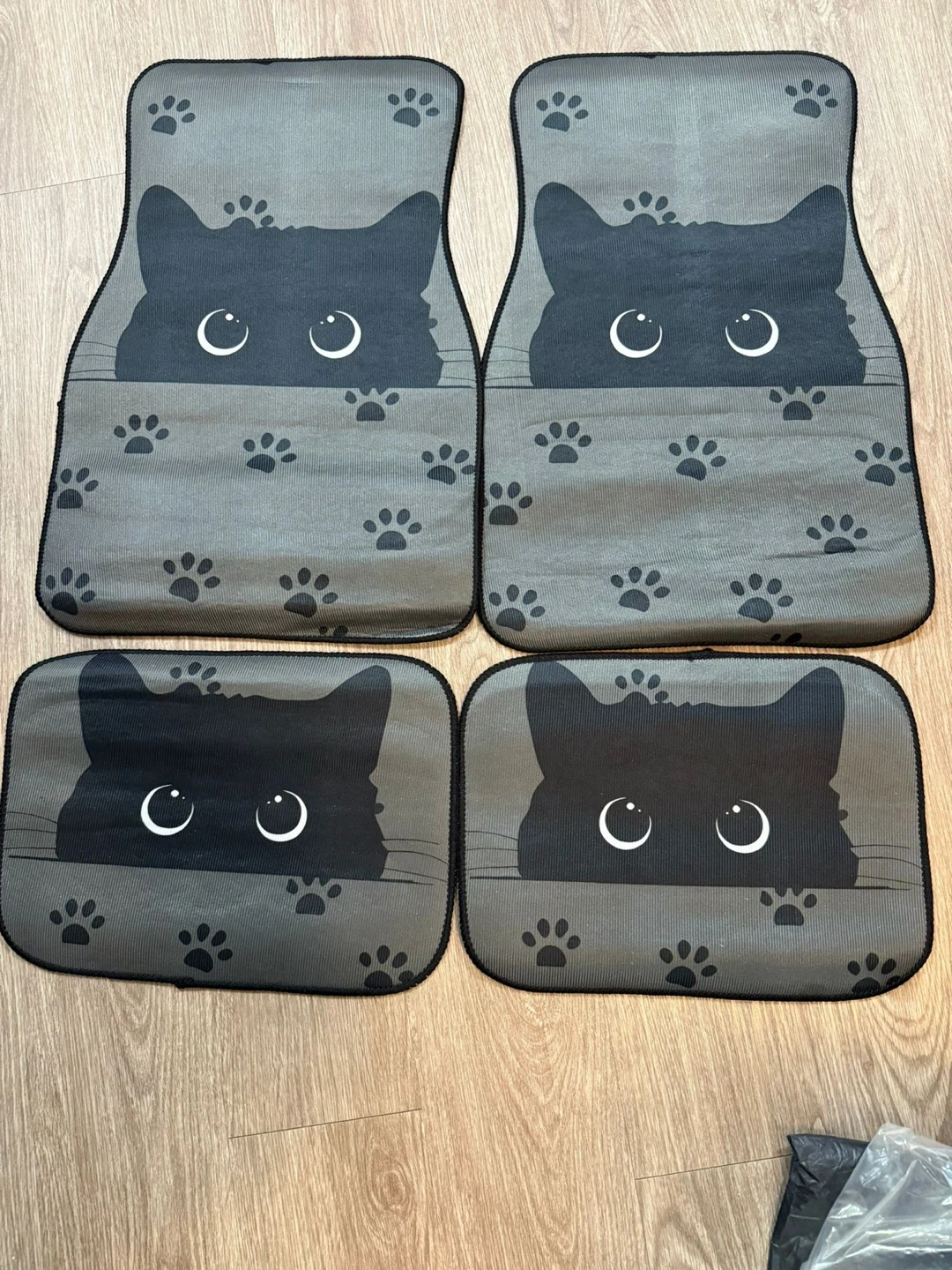 Looking to add a bit of feline fun to your car? I'm selling a set of four car floor mats featuring a cute cat design! They're in great shape and ready to be used.