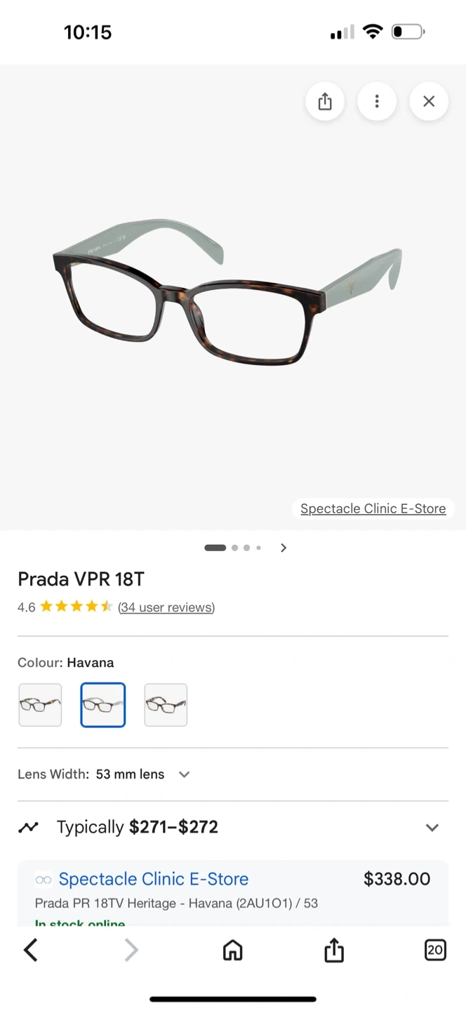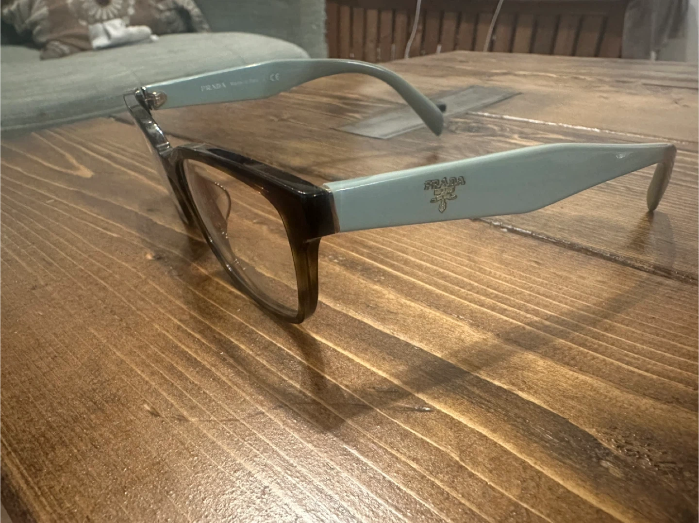 Selling a pair of Prada eyeglasses. They are in good condition. The model number is VPR 18T-F. The size is 53[]16 2AU-101 140. Made in Italy.