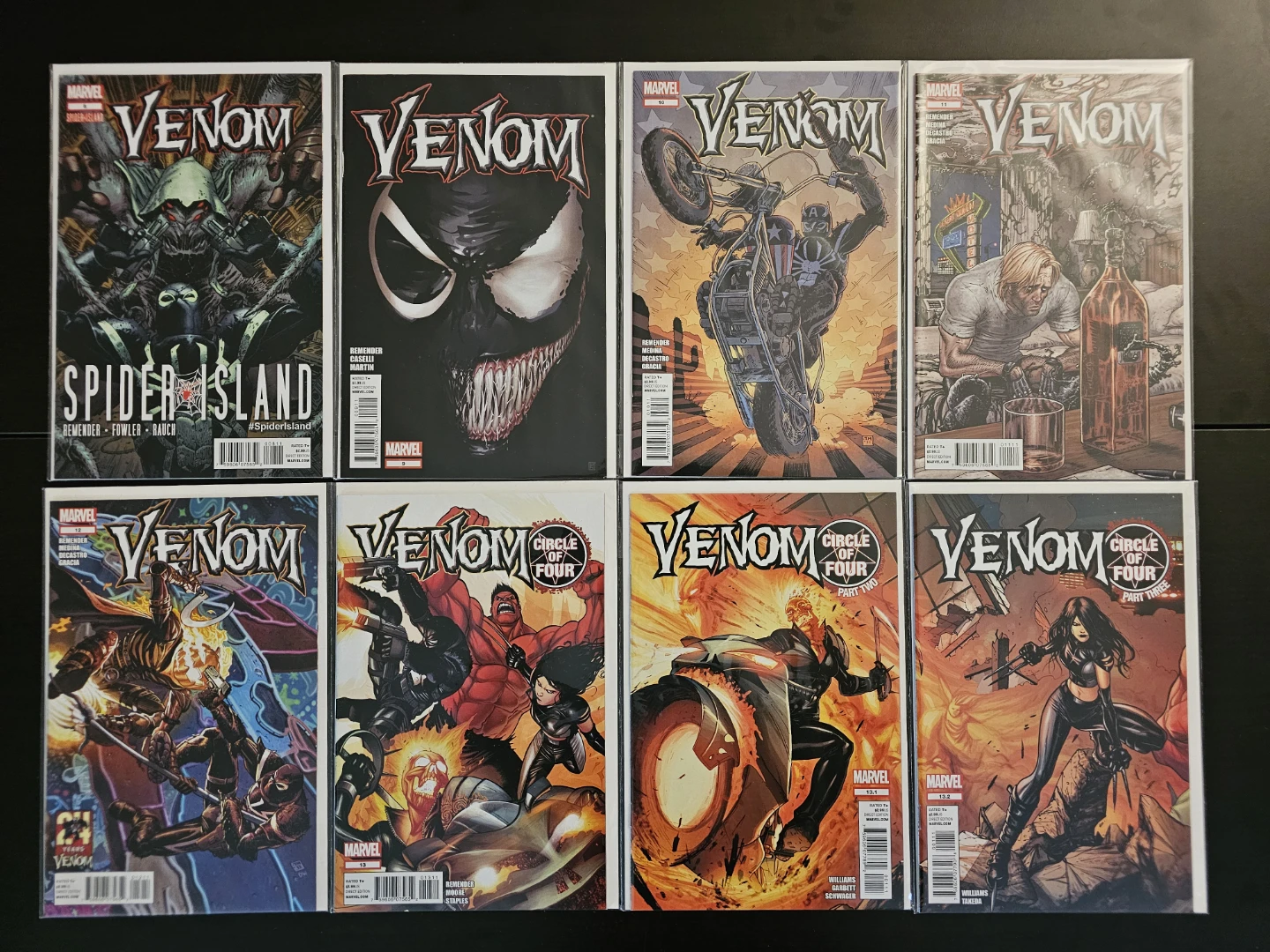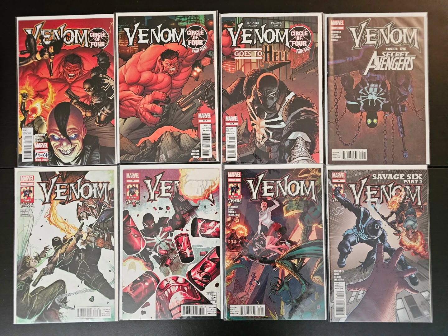 Dive into the world of symbiotes with this complete set of the 2011 Venom series, issues #1 through #25, plus a few extras, for a total of 29 comics! All comics are in used condition. This run features action-packed stories and stunning artwork that any Venom fan will love. I've kept these in sleeves and backing boards. All are in NM condition.